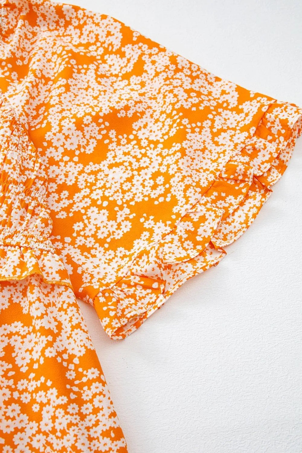 Floral Print Smocked V Neck Wide Sleeve Maxi Dress