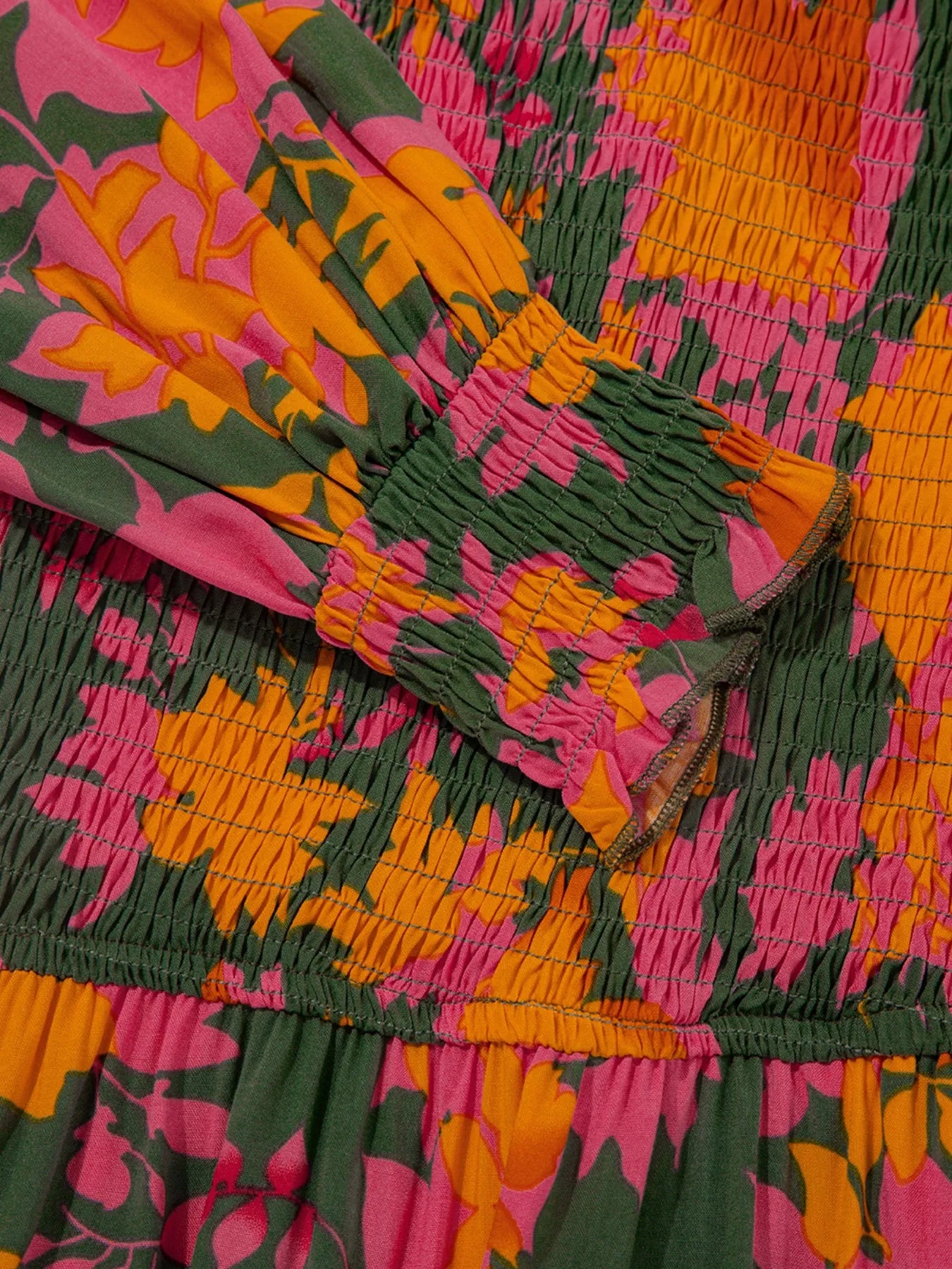 Velste Smocked Floral Print Long Sleeve Maxi Dress