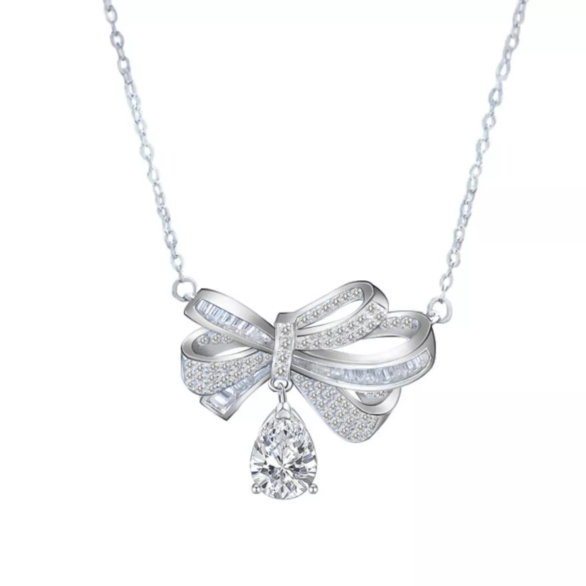 2 Carat Moissanite 925 Sterling Silver Bowknot Necklace