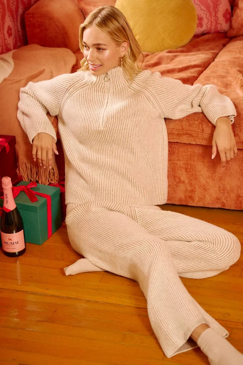 Velste BiBi Two Tone Rib Texured Knit Collared Top with Zip Up