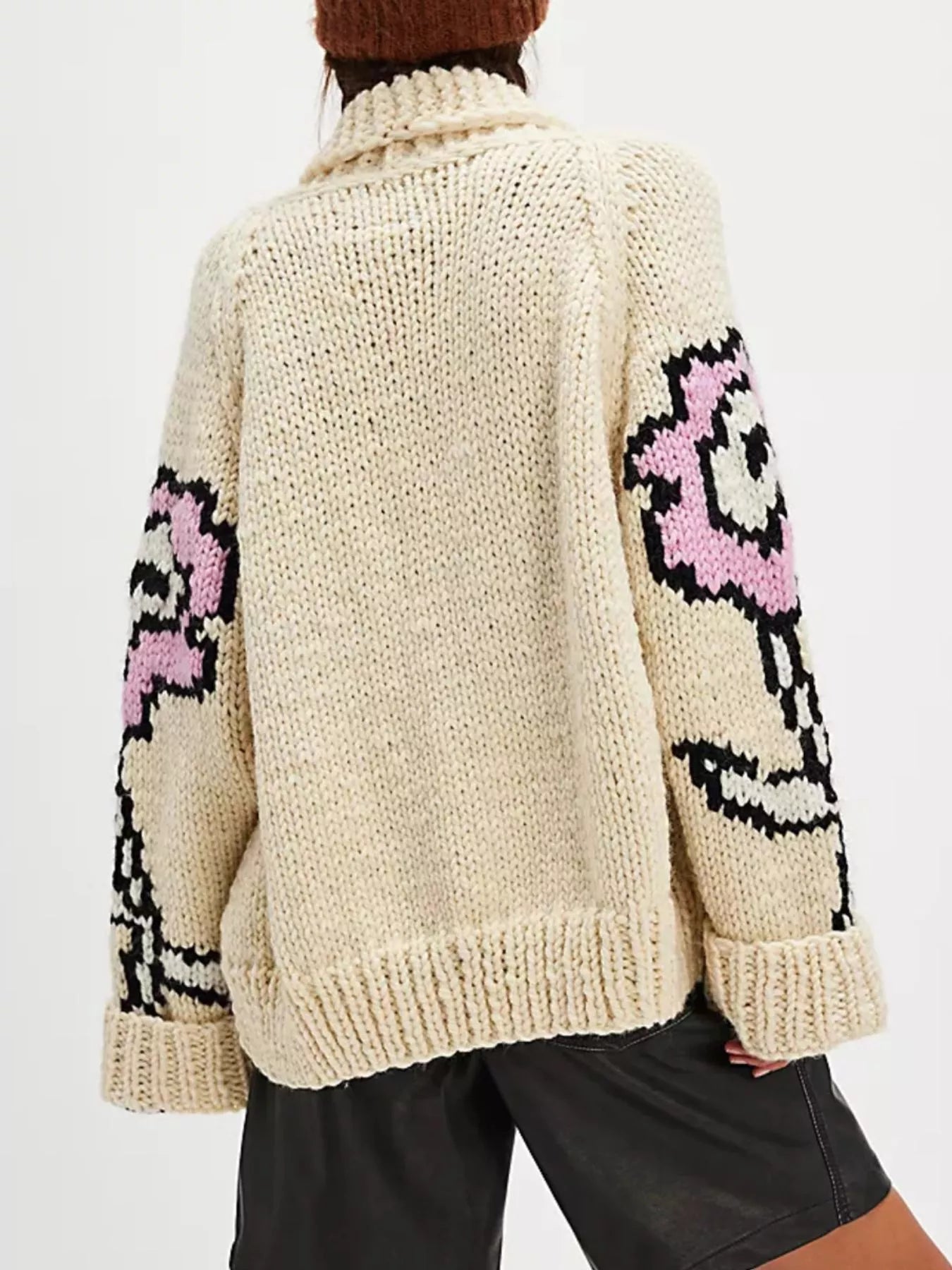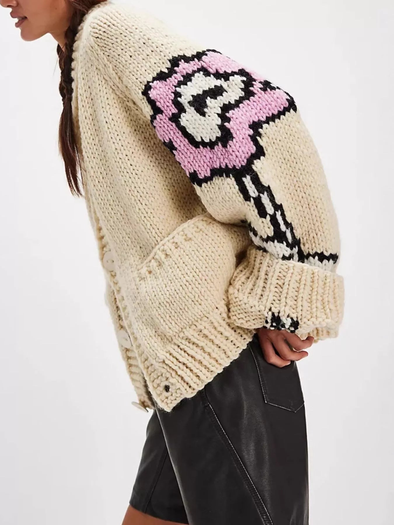 - Features:Cable-Knit,Buttoned,Embroidered