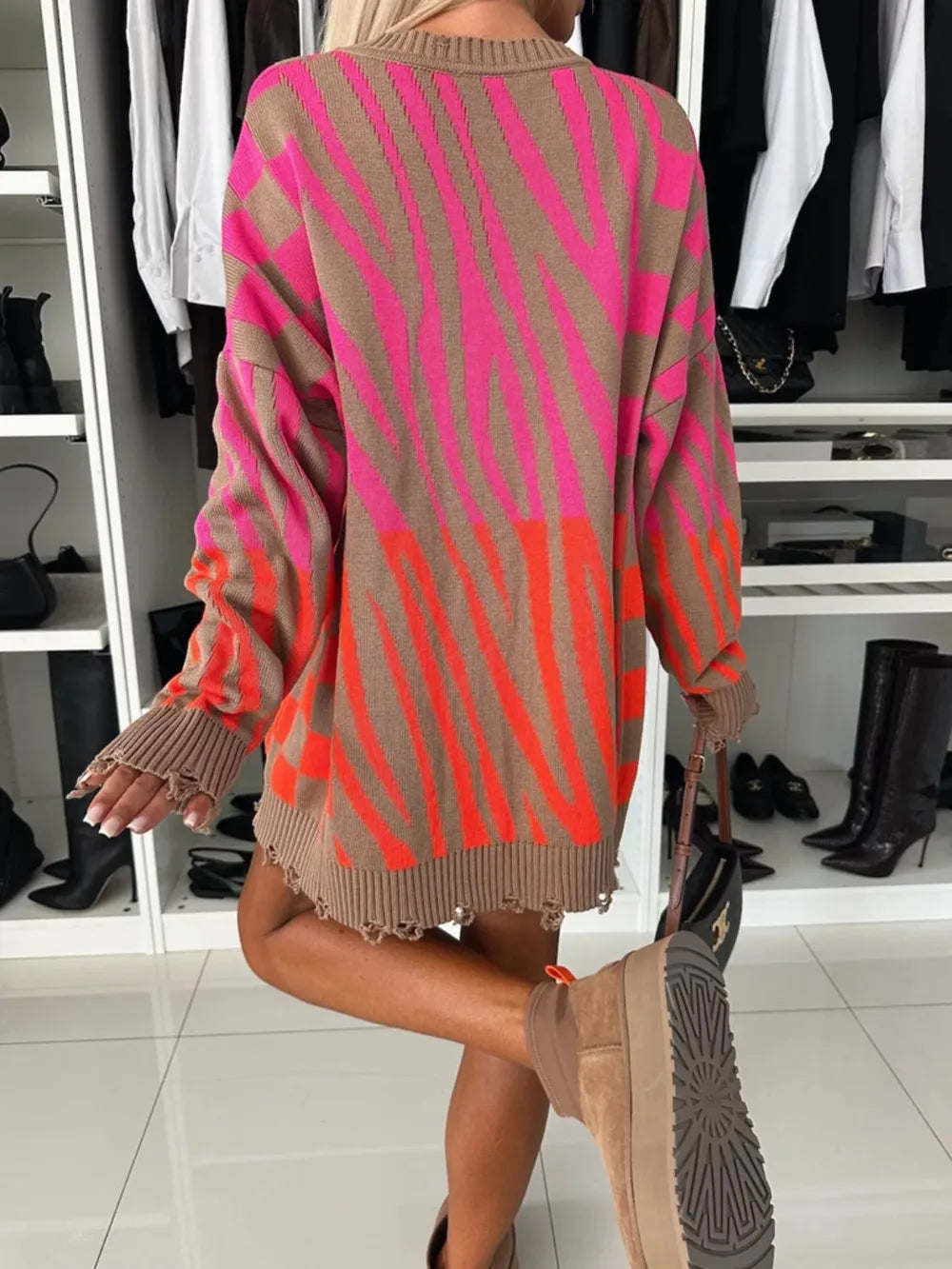 Velste Contrast Round Neck Long Sleeve Oversize Sweater