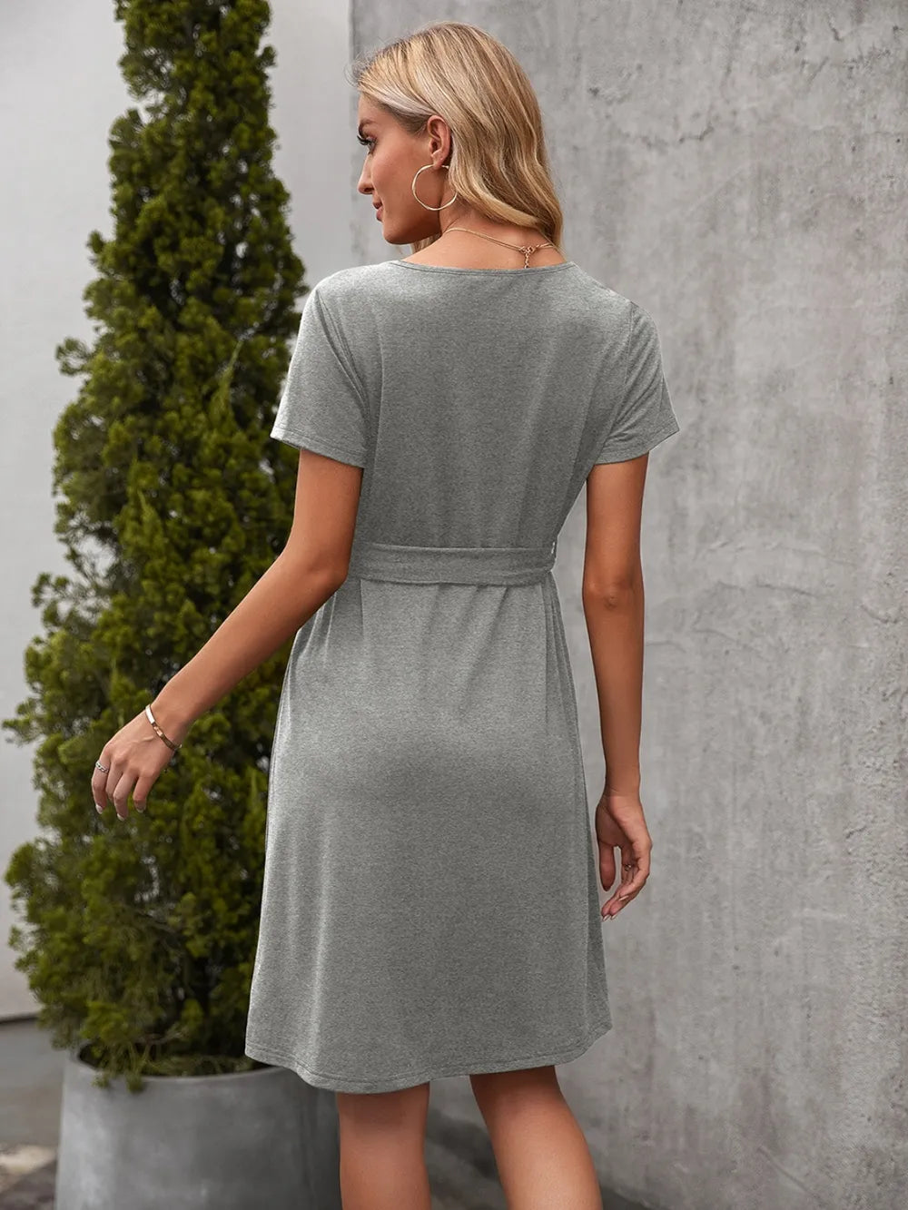Velste Ivy Lane Tied Notched Short Sleeve Dress