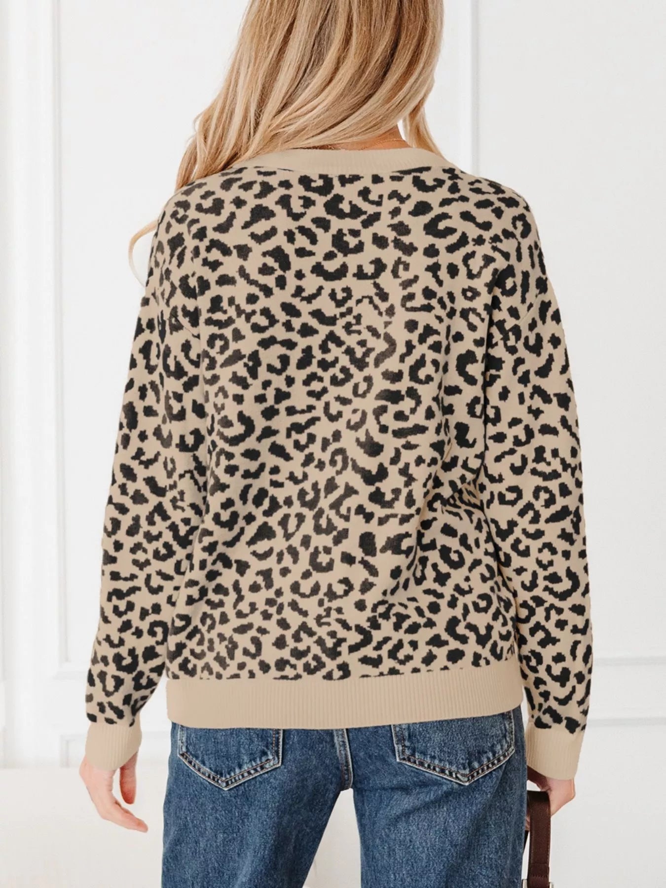 Leopard Drop Shoulder Chunky Knitted Cardigan
