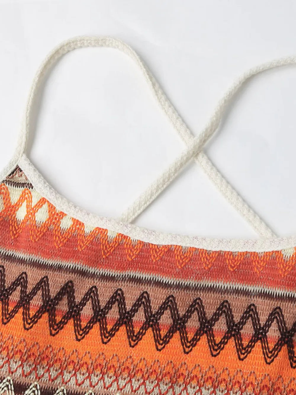 - Features: Tied, Ruffled, Backless