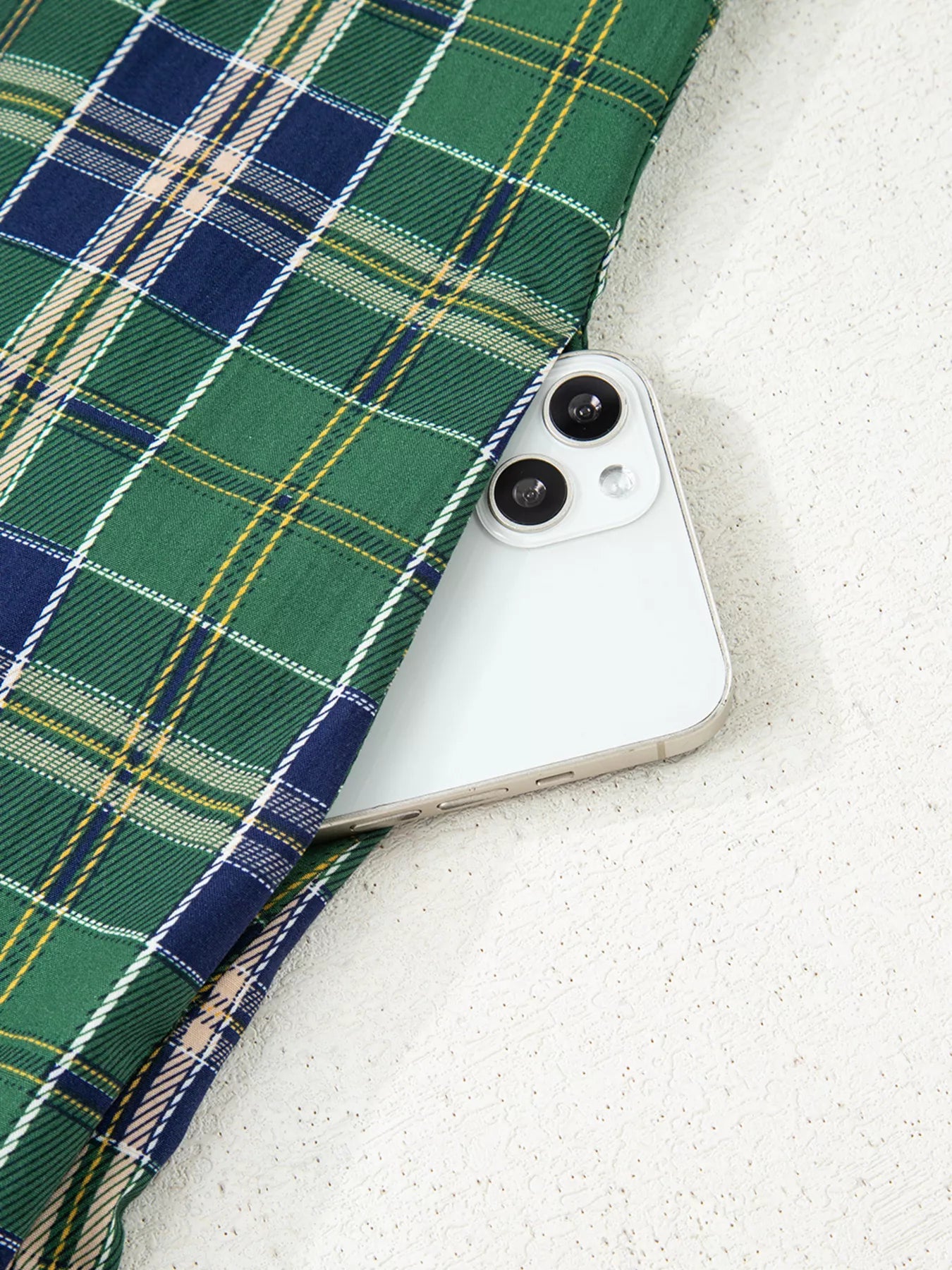 Velste Plaid Frilly Collar Long Sleeve Shift Mini Dress