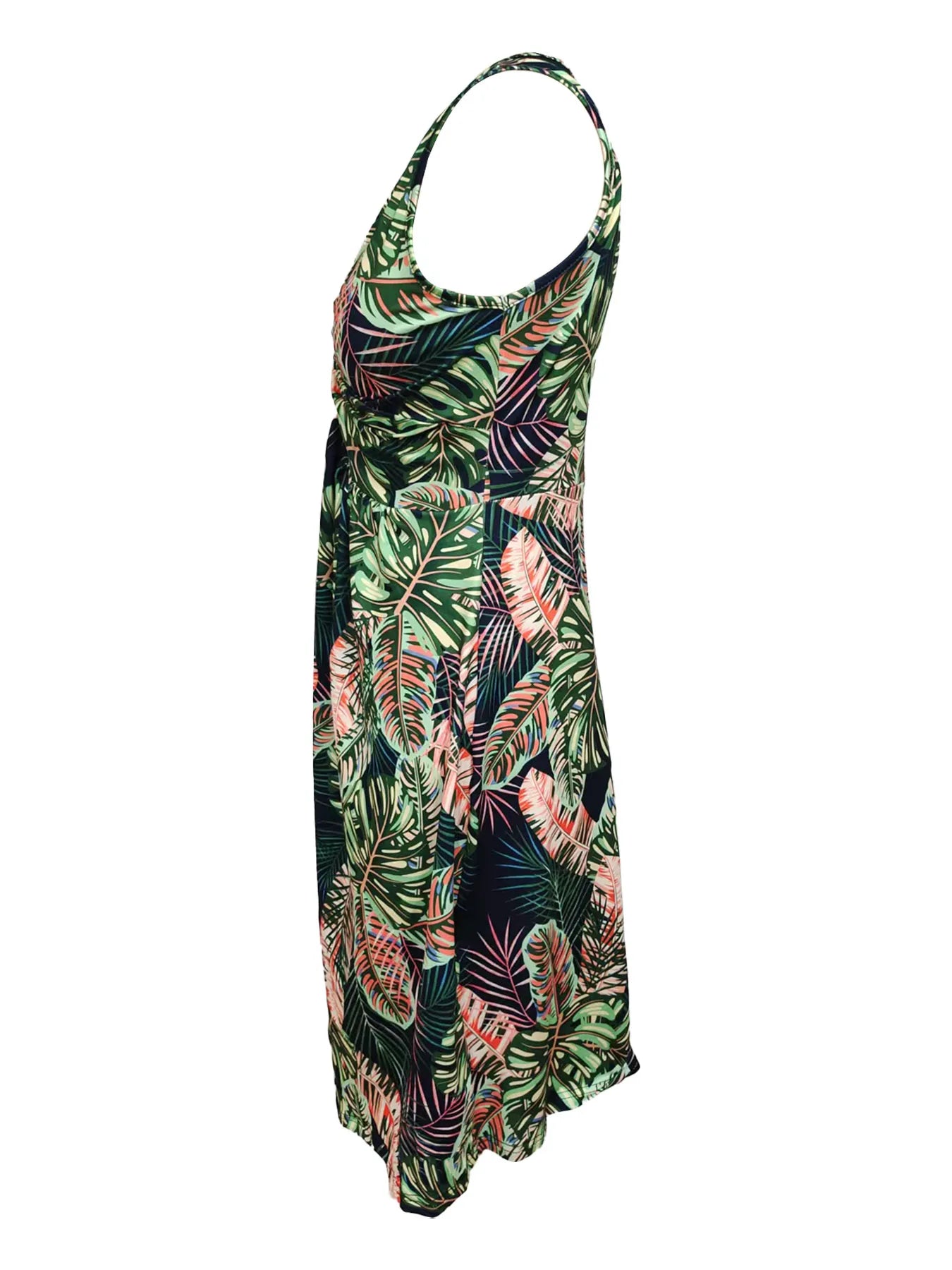 Velste Tropical Print V-Neck Sleeveless Summer Dress