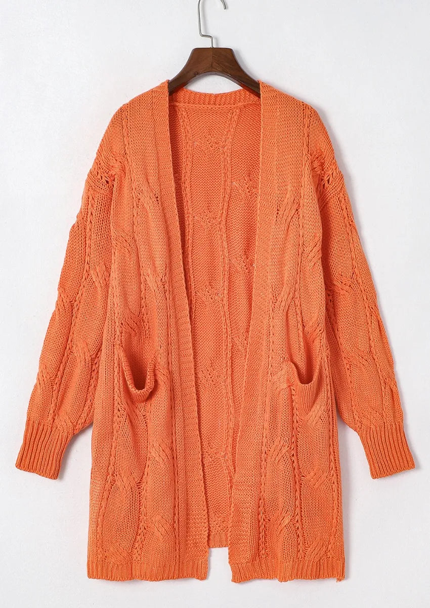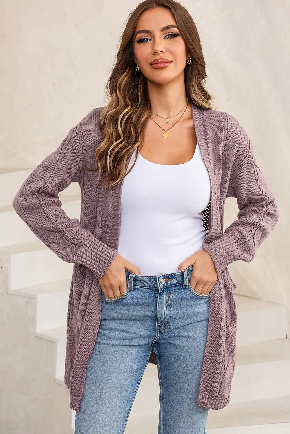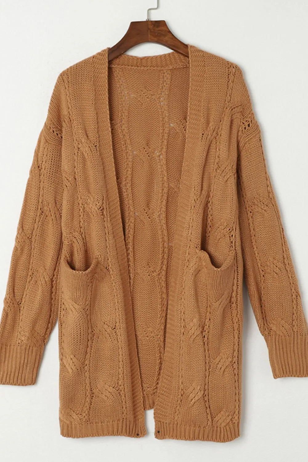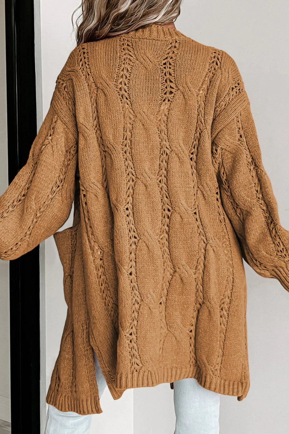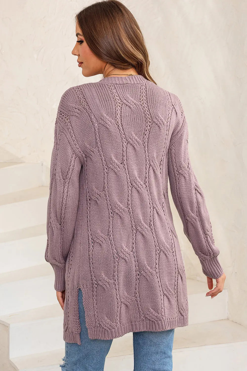 Velste Cable-Knit Dropped Shoulder Slit Cardigan