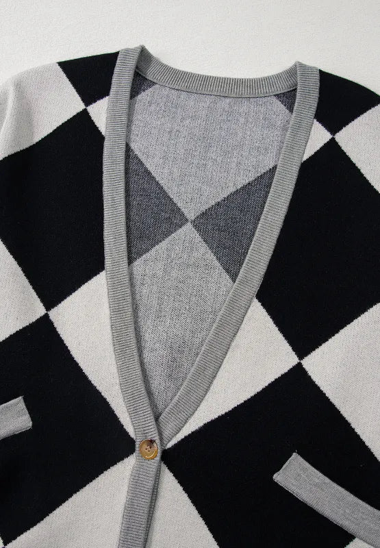 Velste Color Block Button Down Long Sleeve Cardigan
