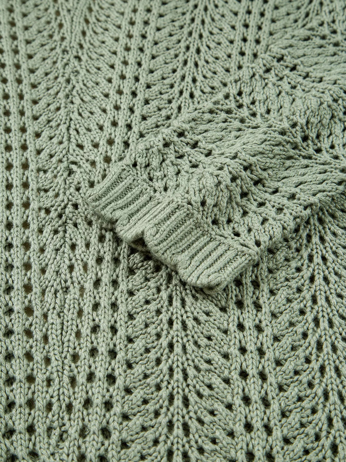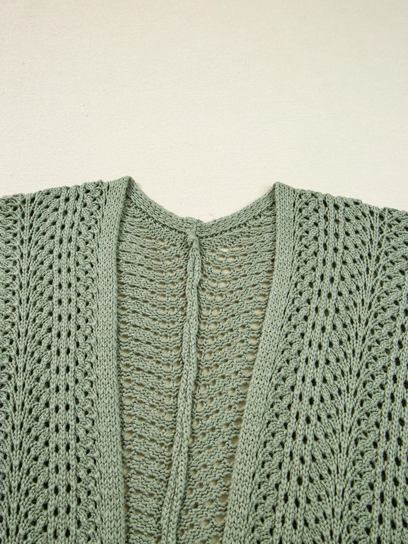 Scalloped Edge Eyelet Knit Batwing Sleeve Cardigan