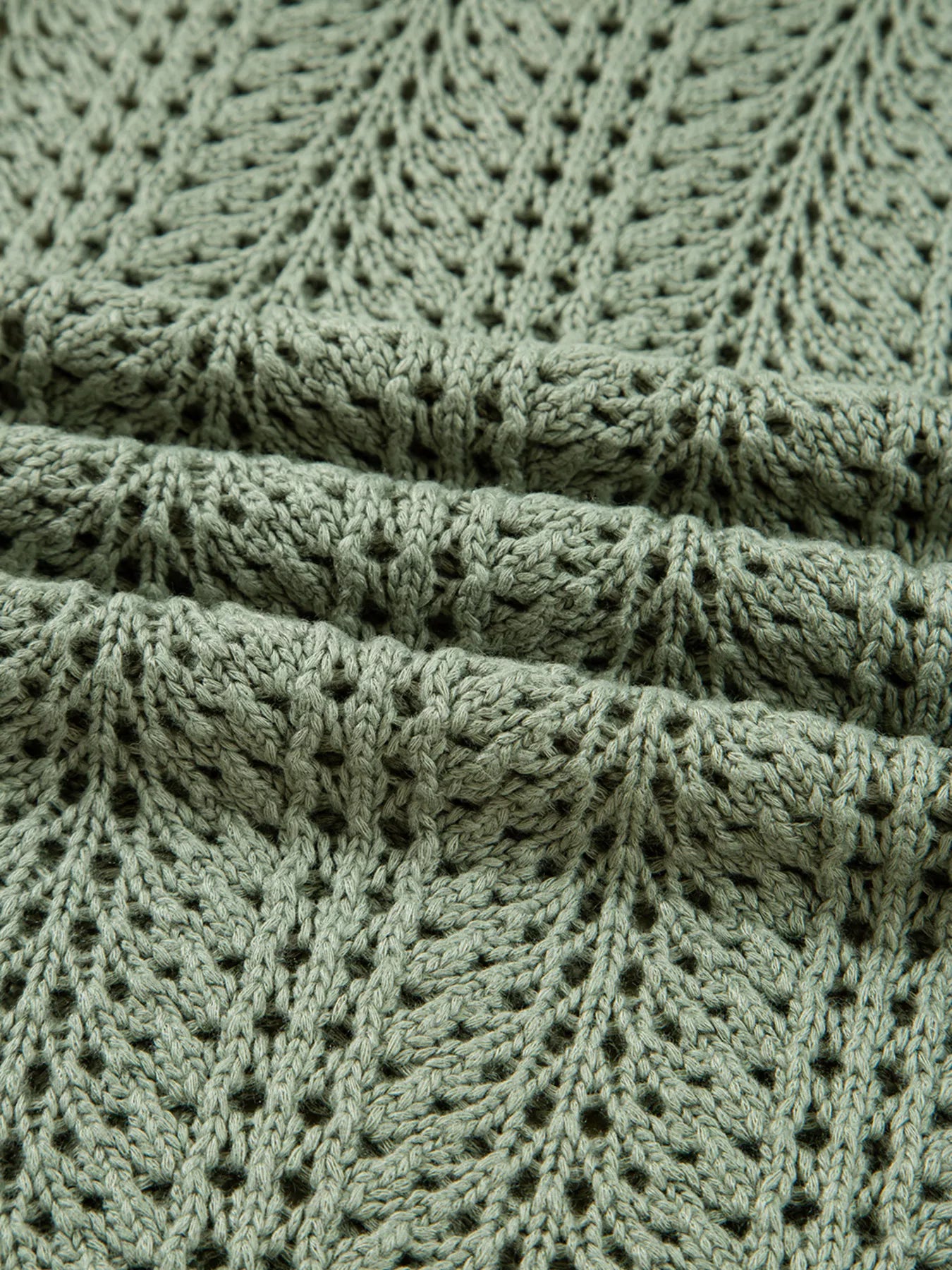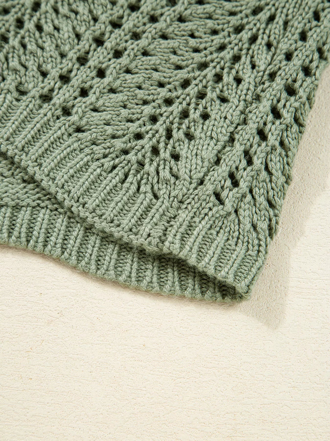 Velste Scalloped Edge Eyelet Knit Batwing Sleeve Cardigan