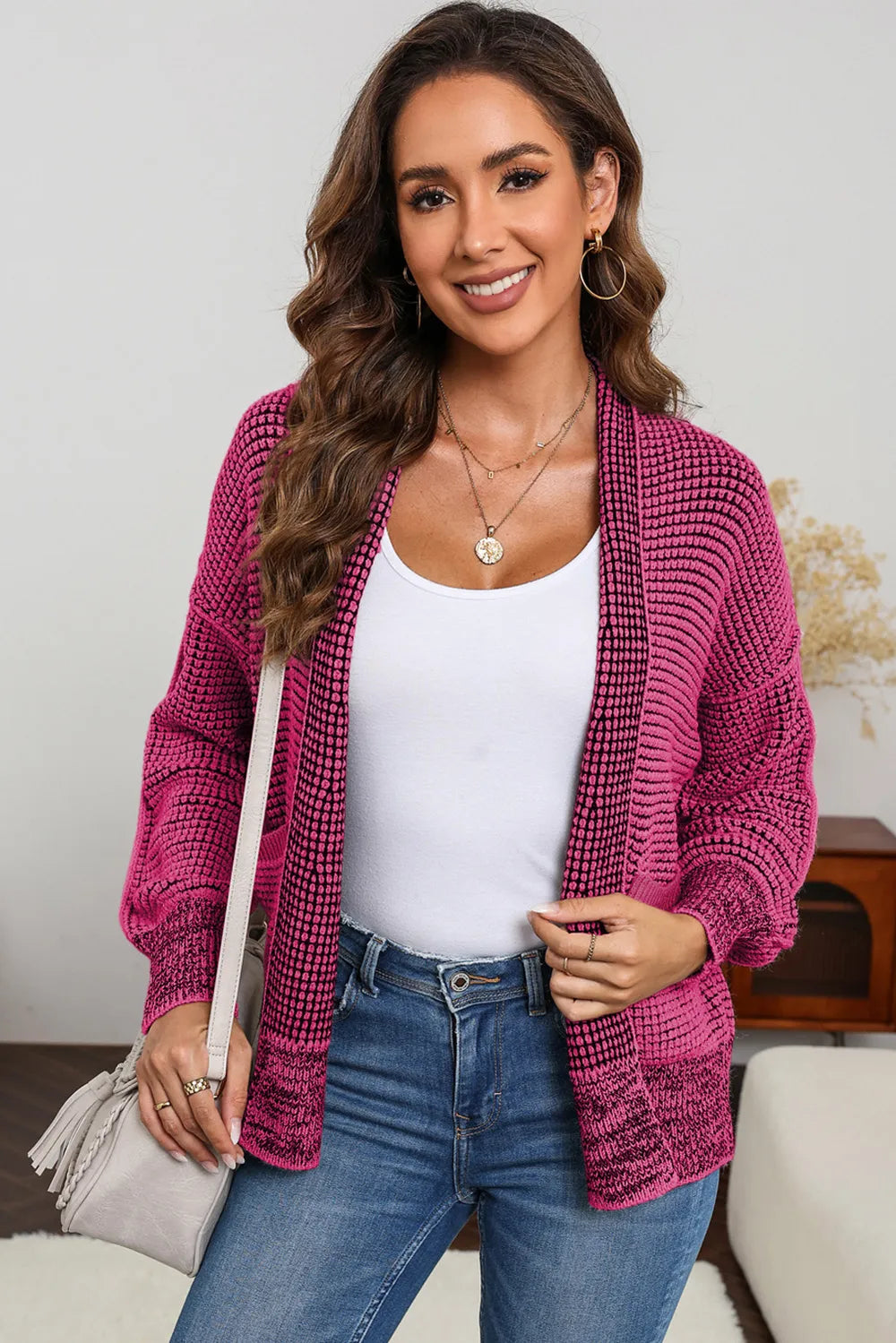 Velste Waffle-knit Pocketed Open Front Cardigan