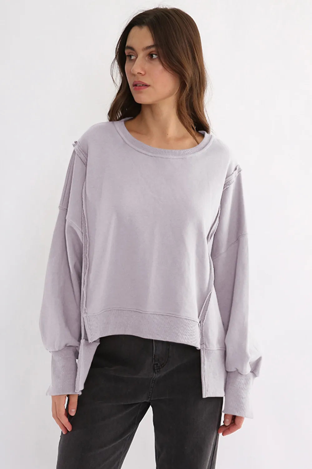 Exposed Seam High-Low Long Sleeve Sweatshirt