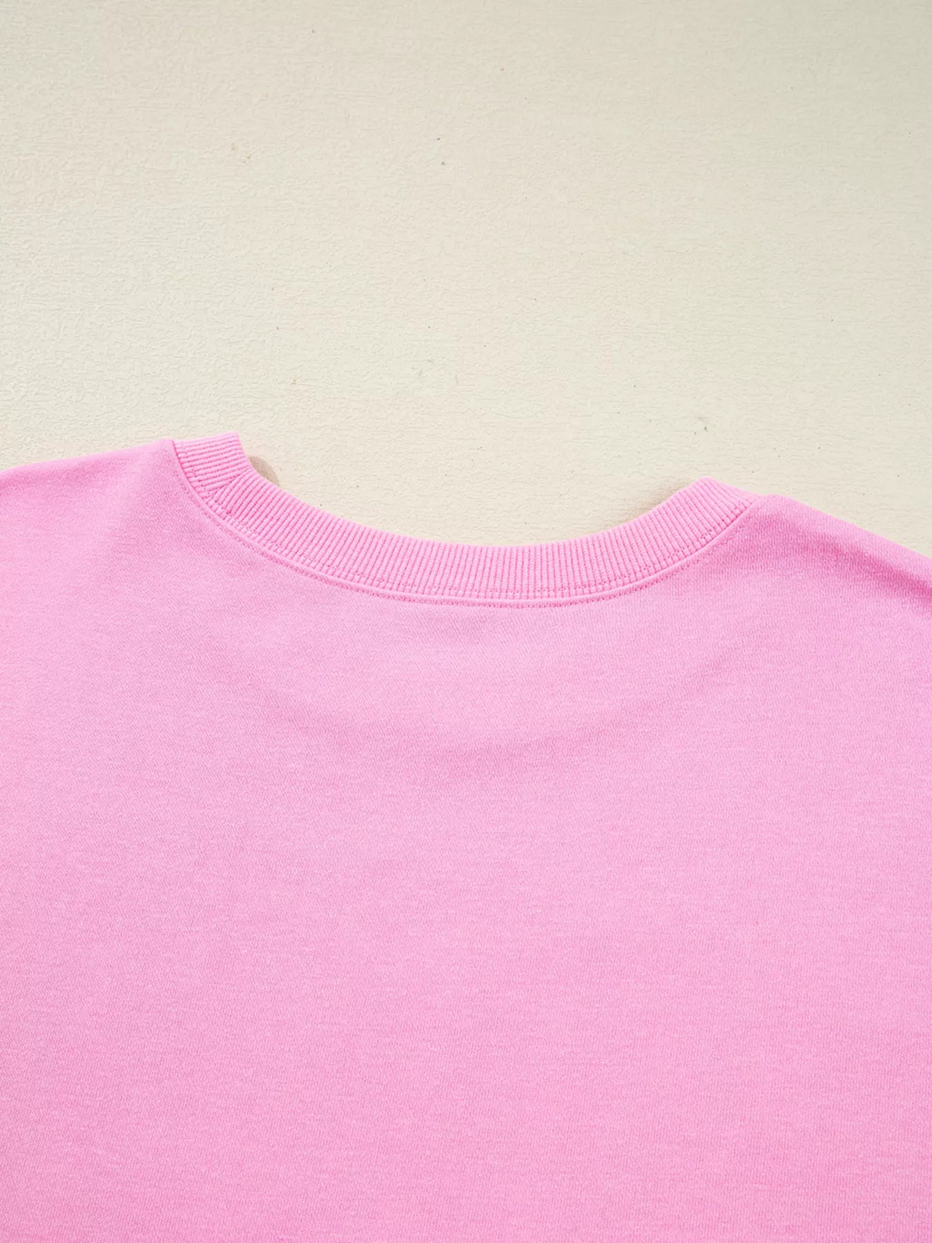Velste Sequin XOXO Letter Graphic Exposed Seam Baggy Sweatshirt