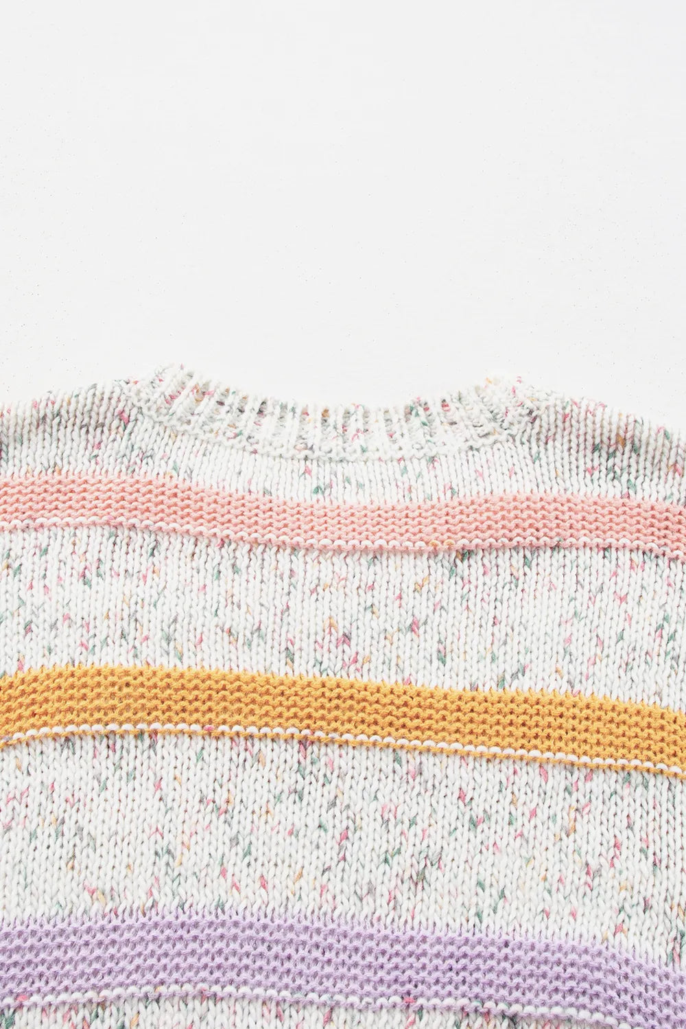 Contrast Striped Round Neck Dropped Shoulder Sweater