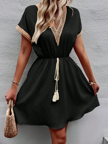 Devine Contrast Trim V-Neck Short Sleeve Mini Dress
