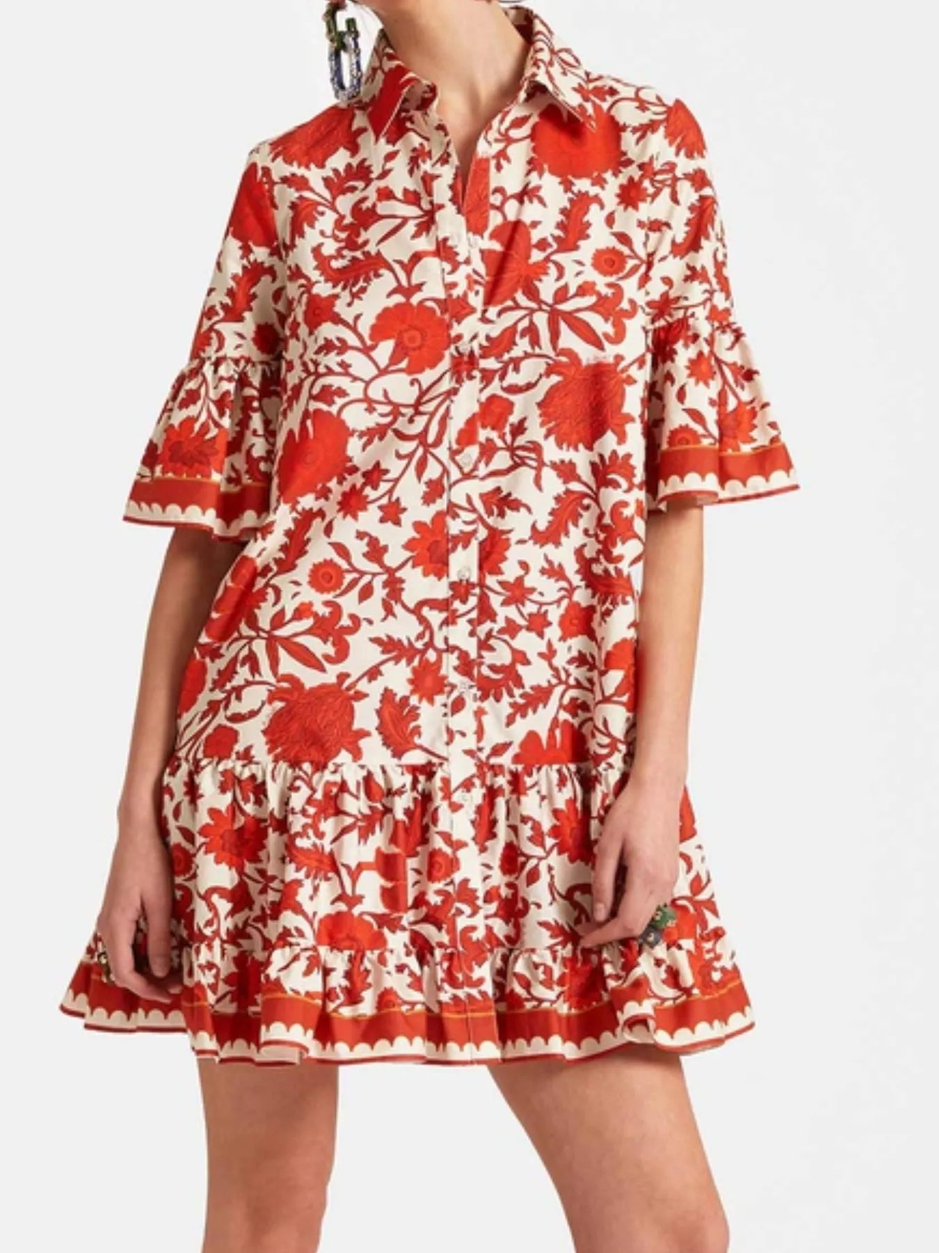 Velste Floral Print Ruffle Sleeve Mini Dress