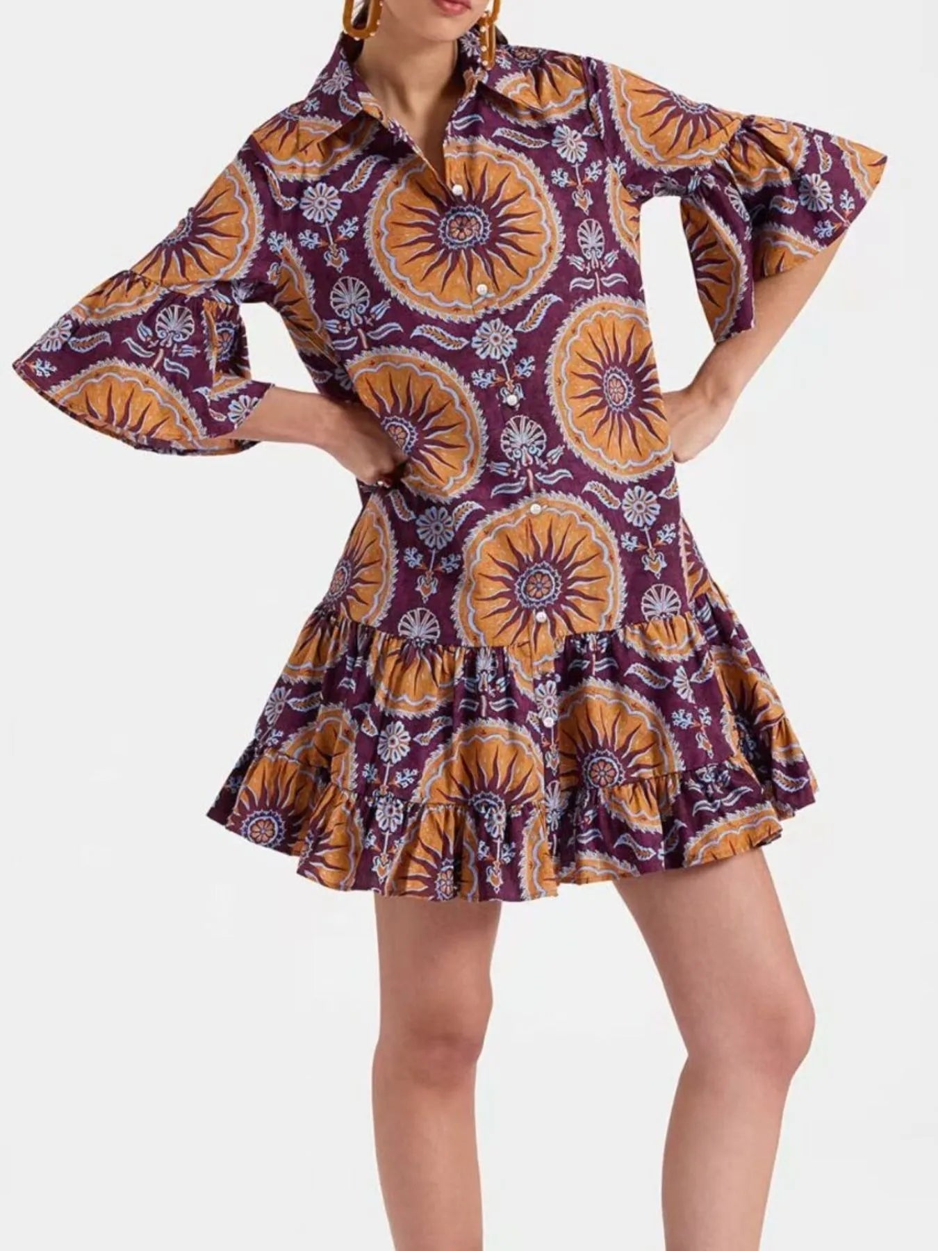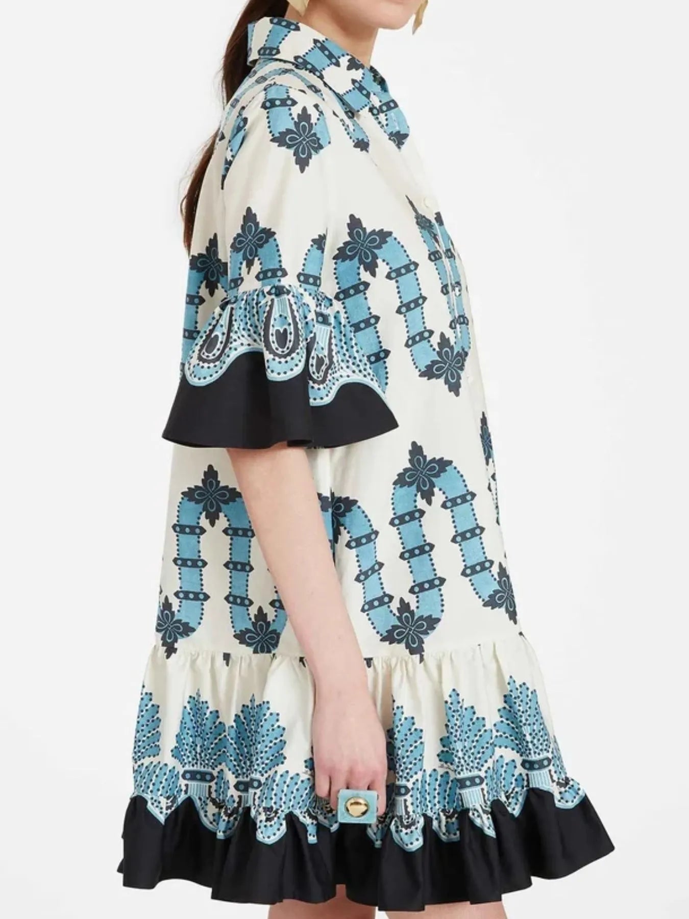 - Features:Buttoned,Ruffled