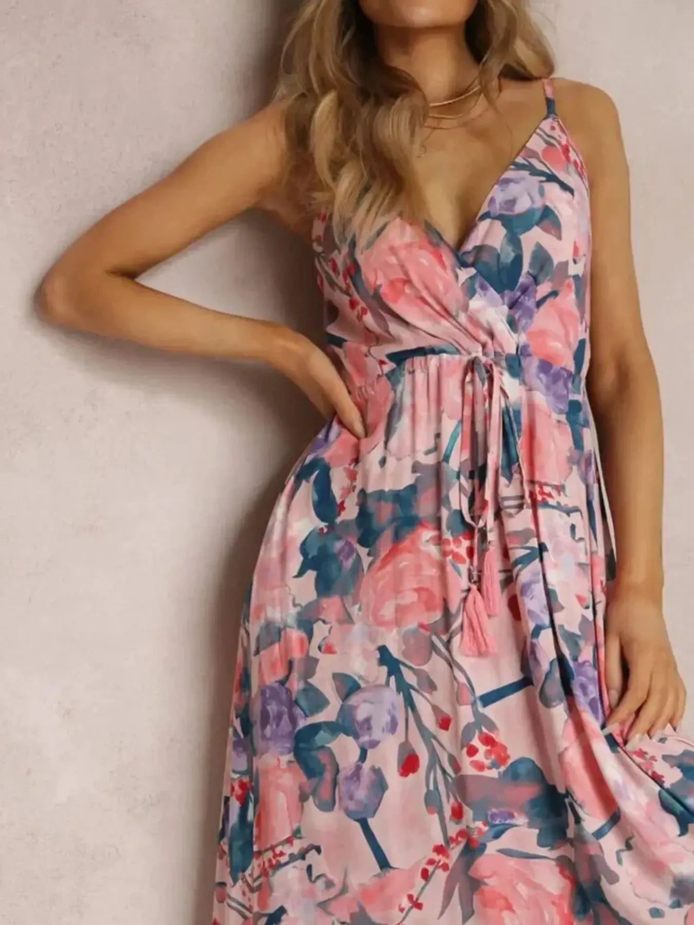 Velste Floral Print Surplice Spaghetti Strap Maxi Dress