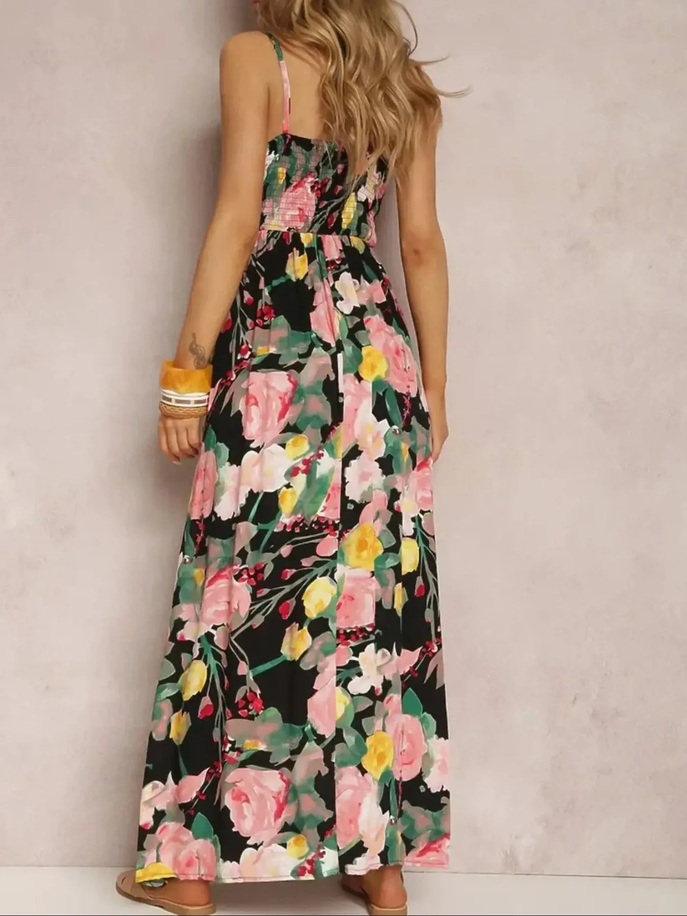 Floral Print Surplice Spaghetti Strap Maxi Dress