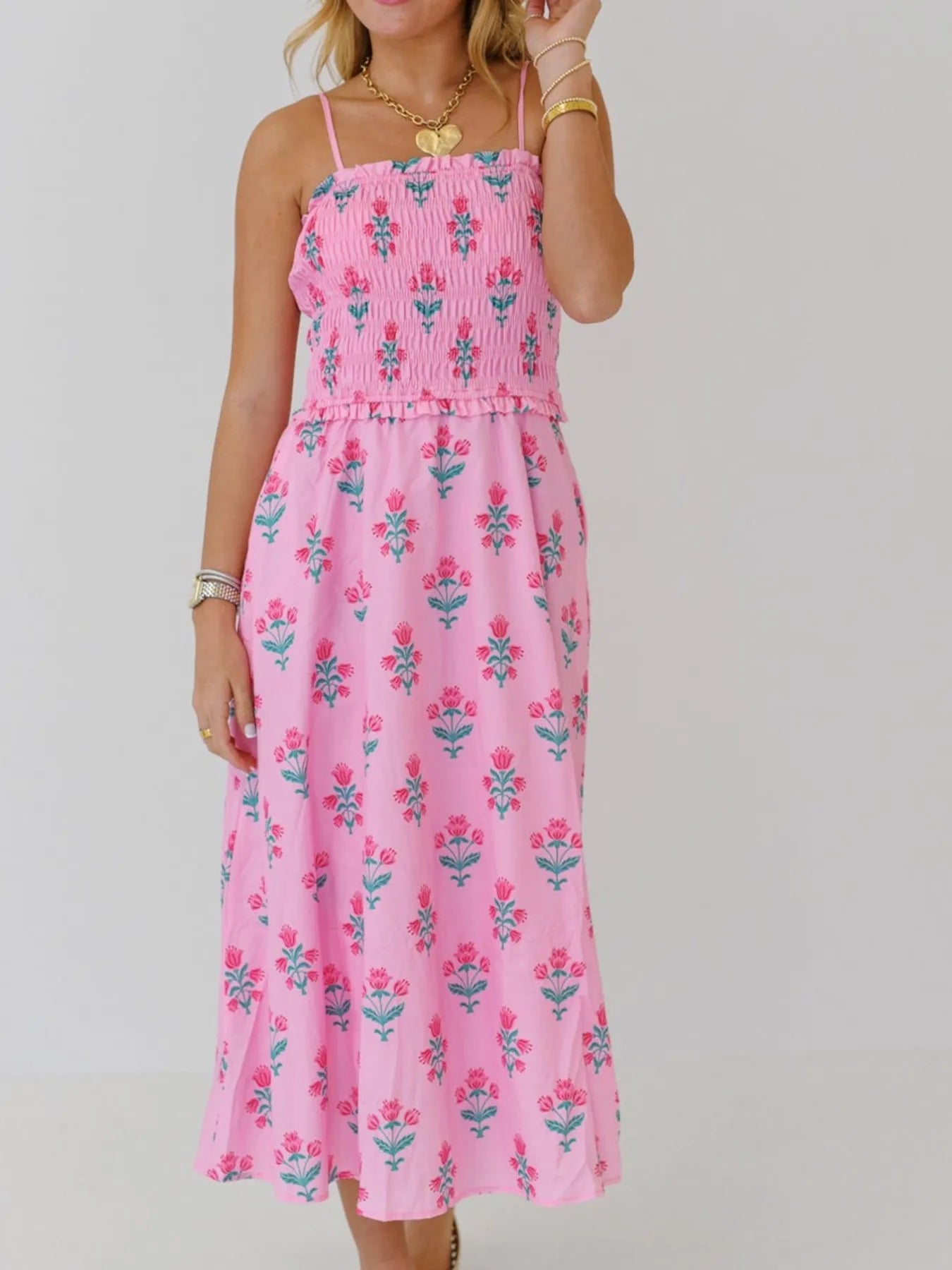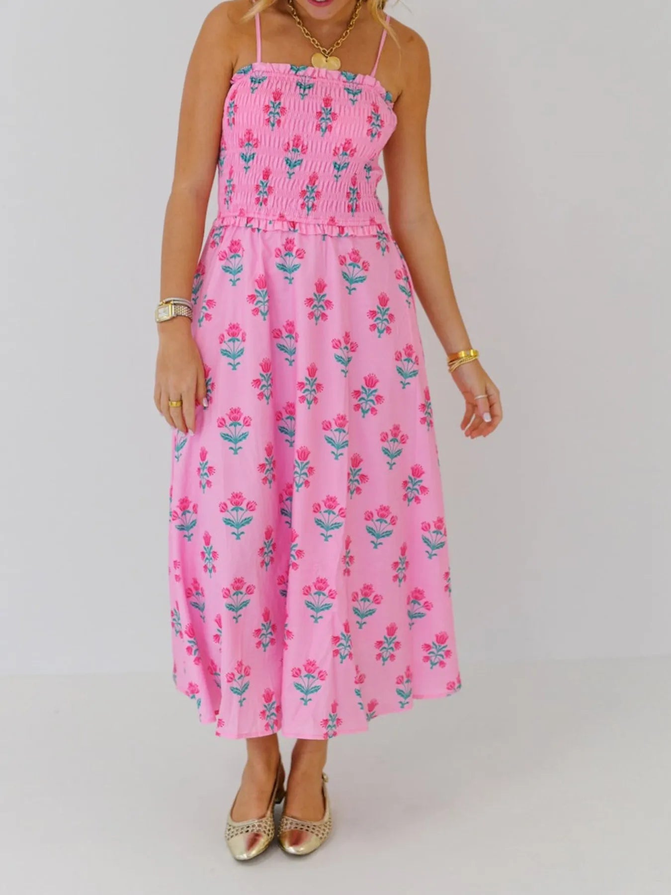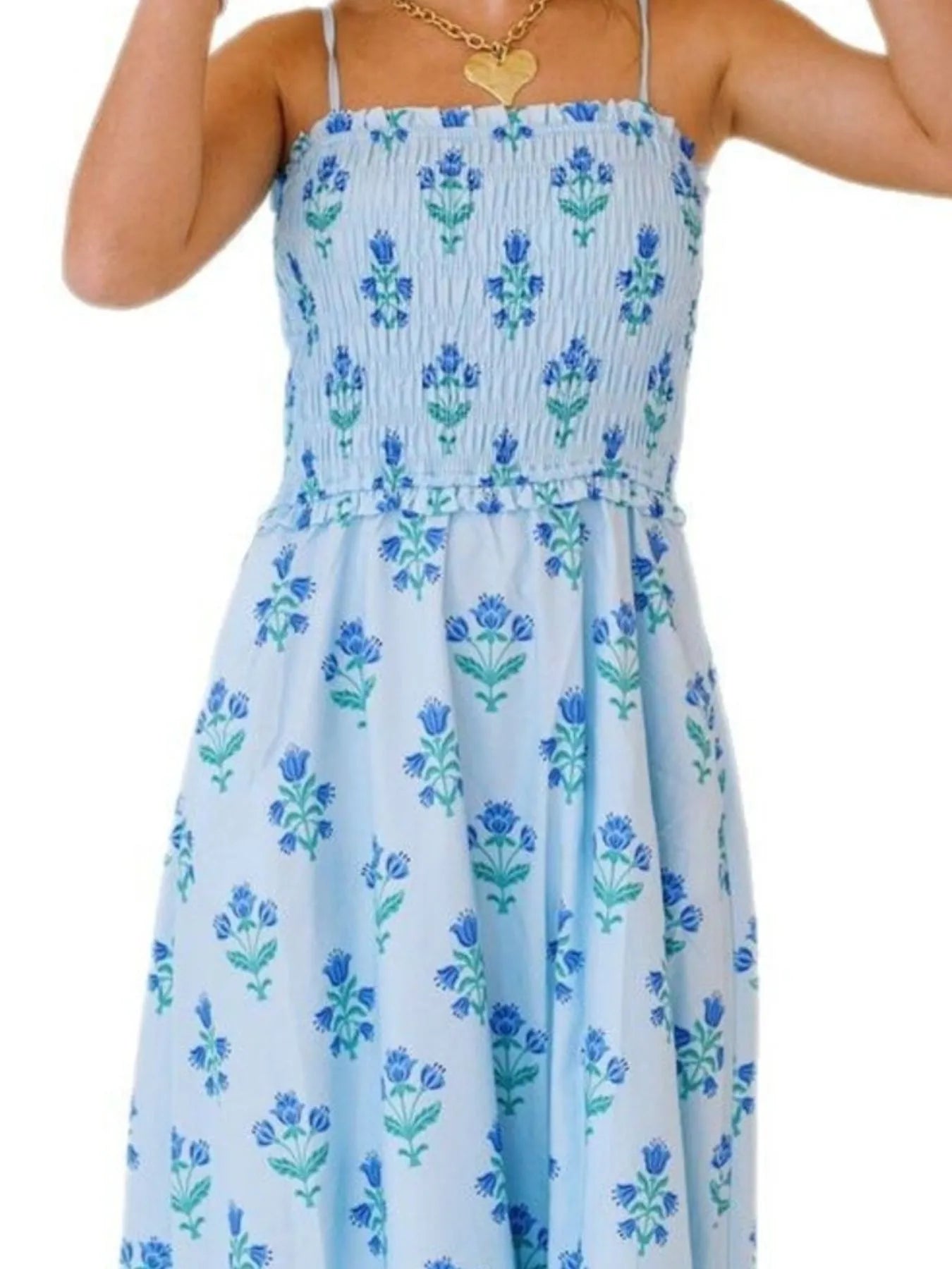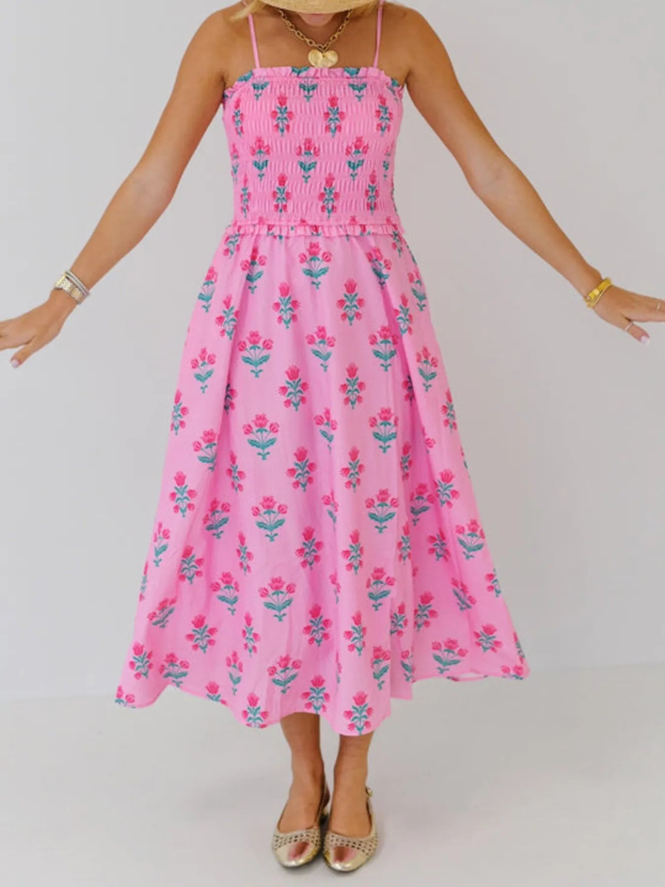 Velste Floral Smocked Adjustable Strap Midi Cami Dress