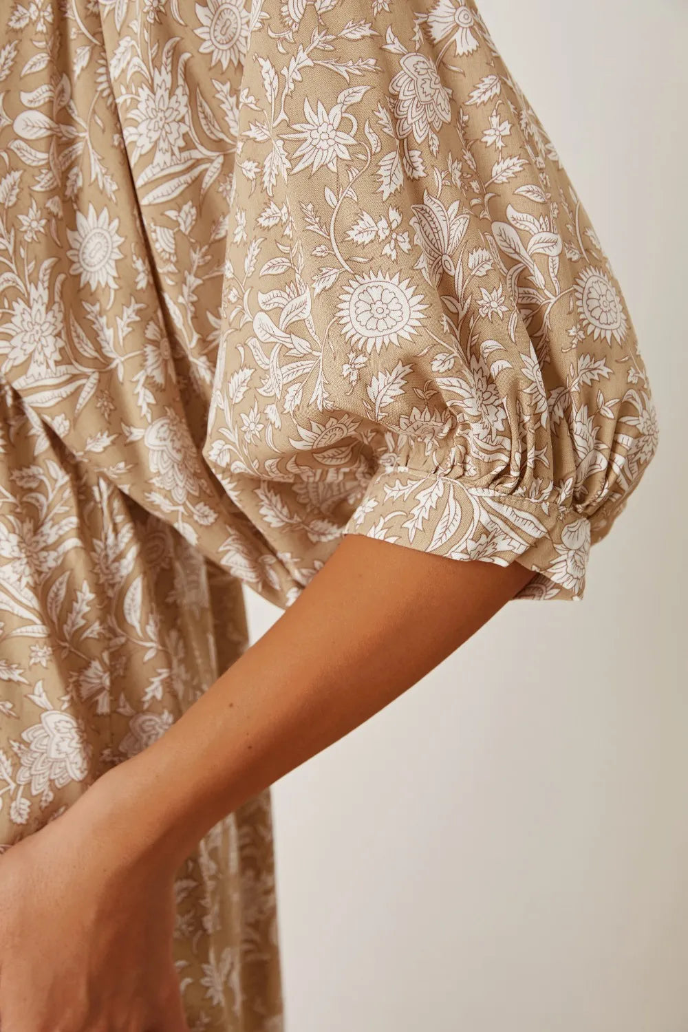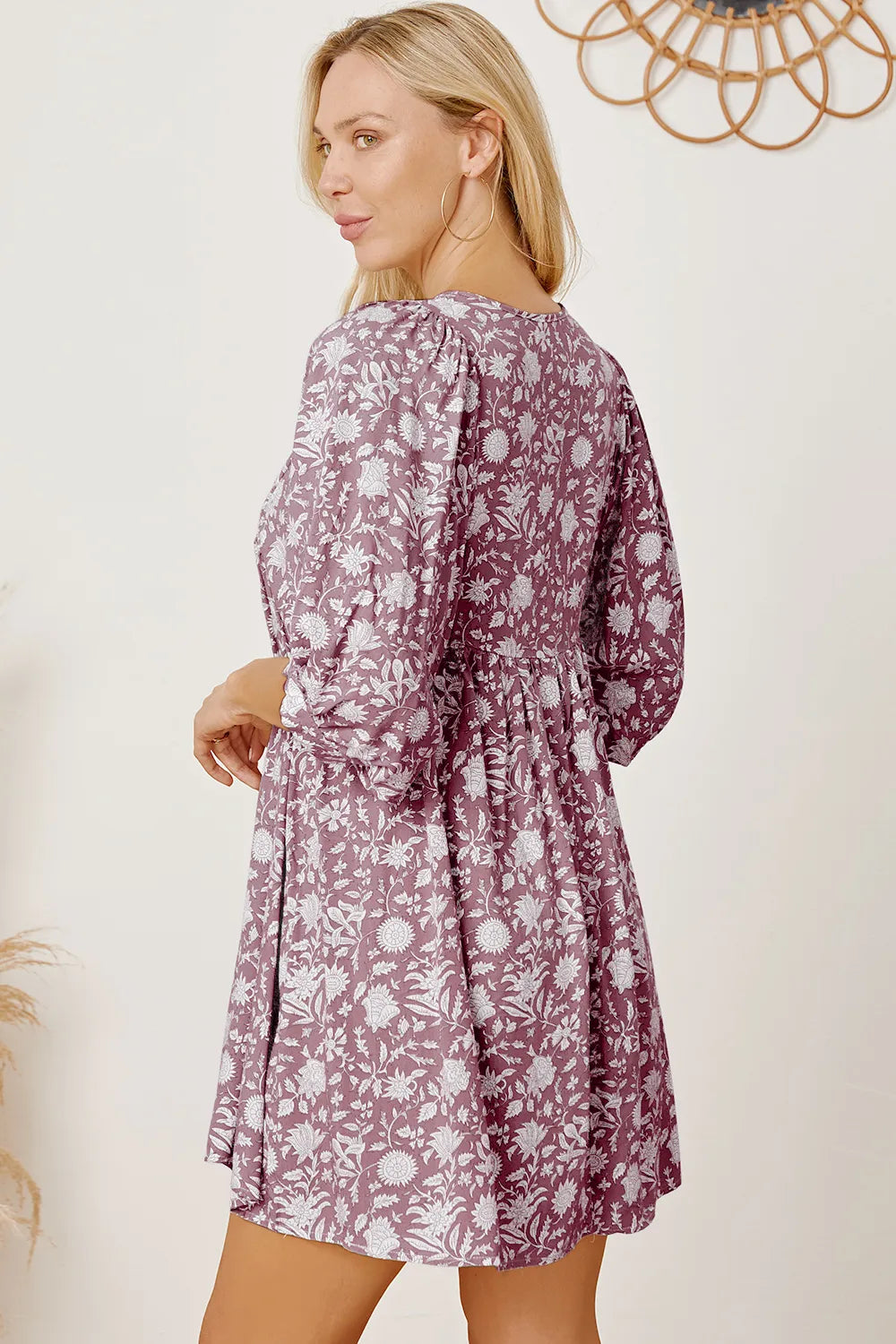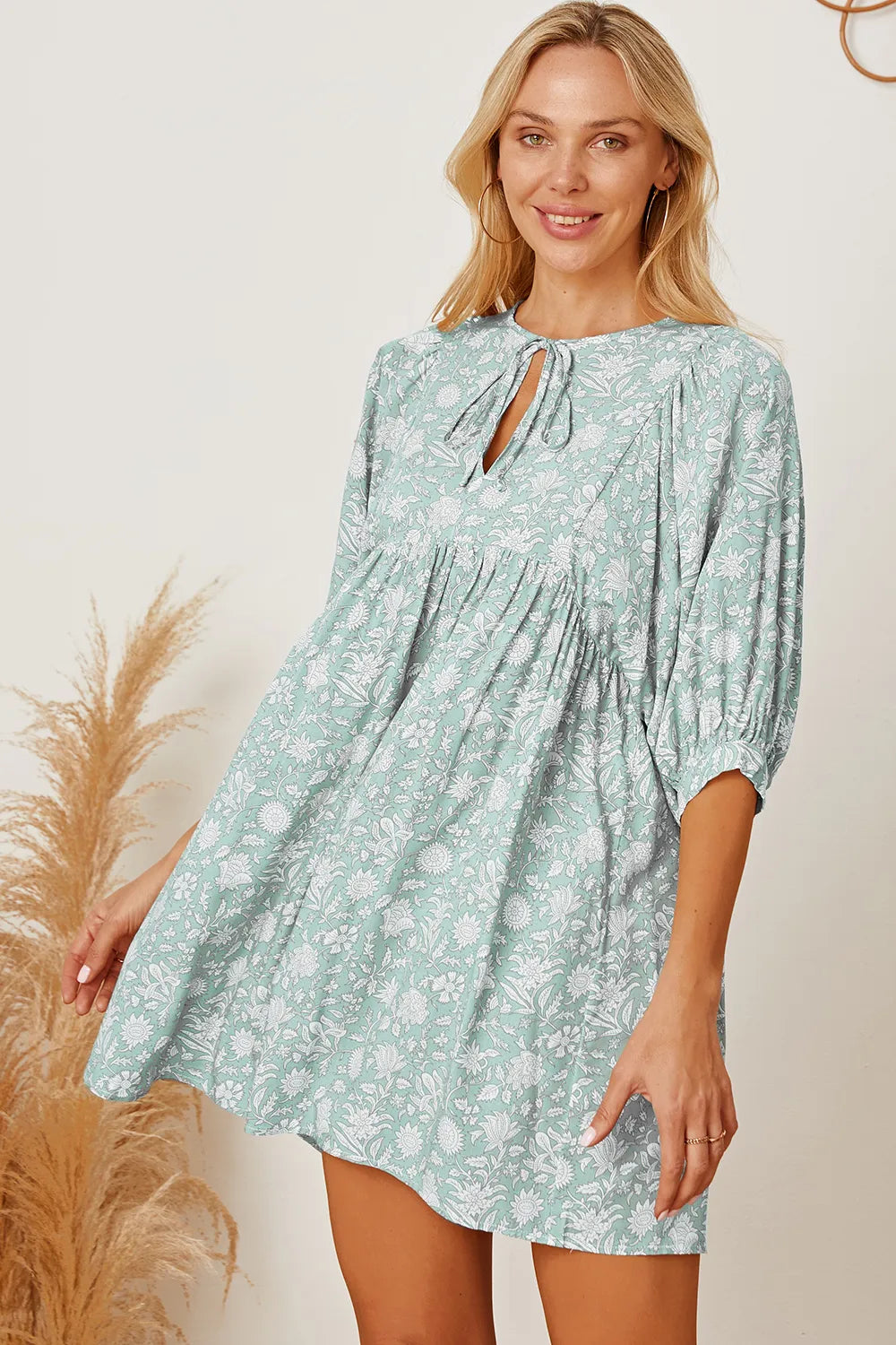 Velste Floral Tie Neck Ruched Babydoll Dress
