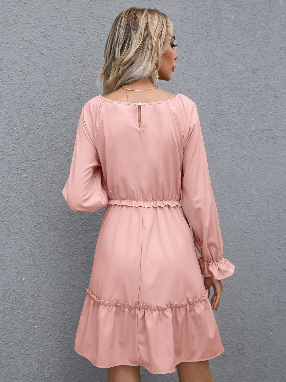 Velste Ivy Lane Frill V-Neck Flounce Sleeve Ruffle Hem Dress