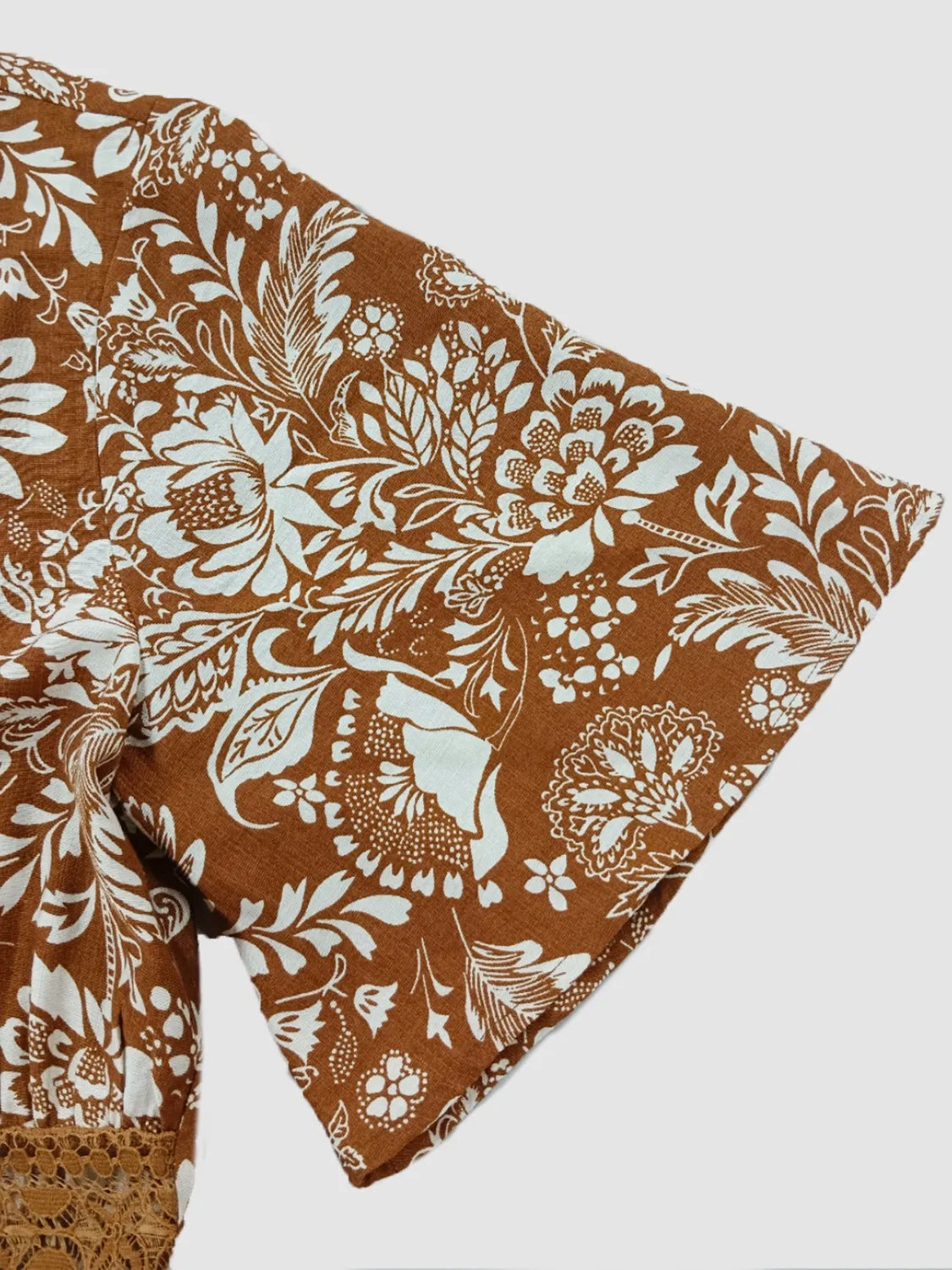 Velste Lace Detail Printed Short Sleeve Midi Dress