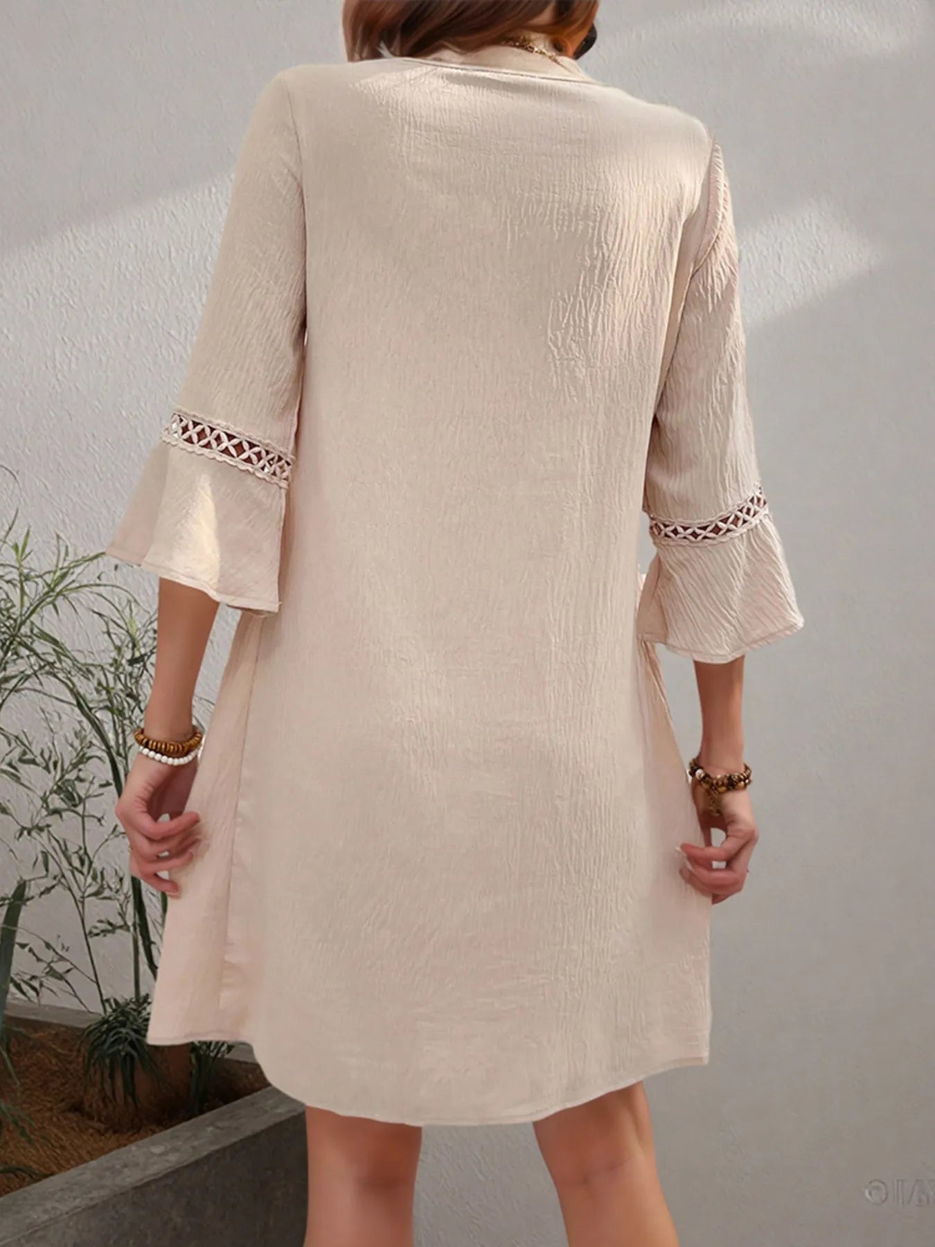 Velste Lace Detail V-Neck Bell Sleeve Dress