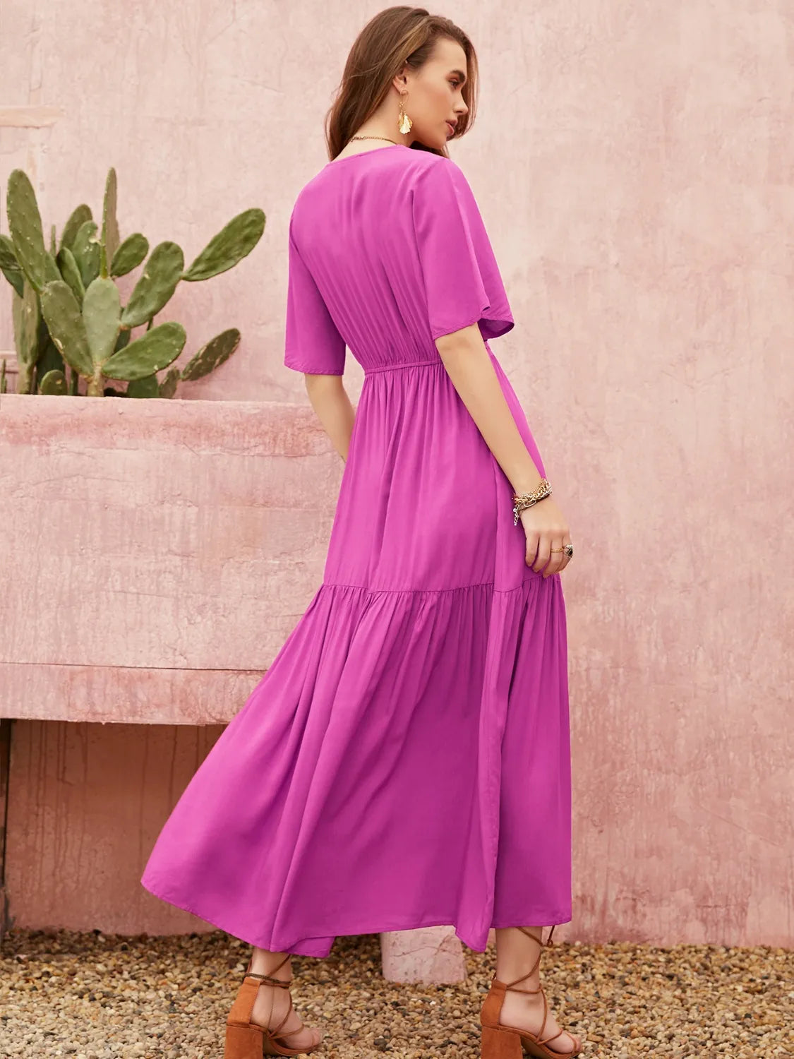 Velste Lace Detail V-Neck Short Sleeve Midi Dress