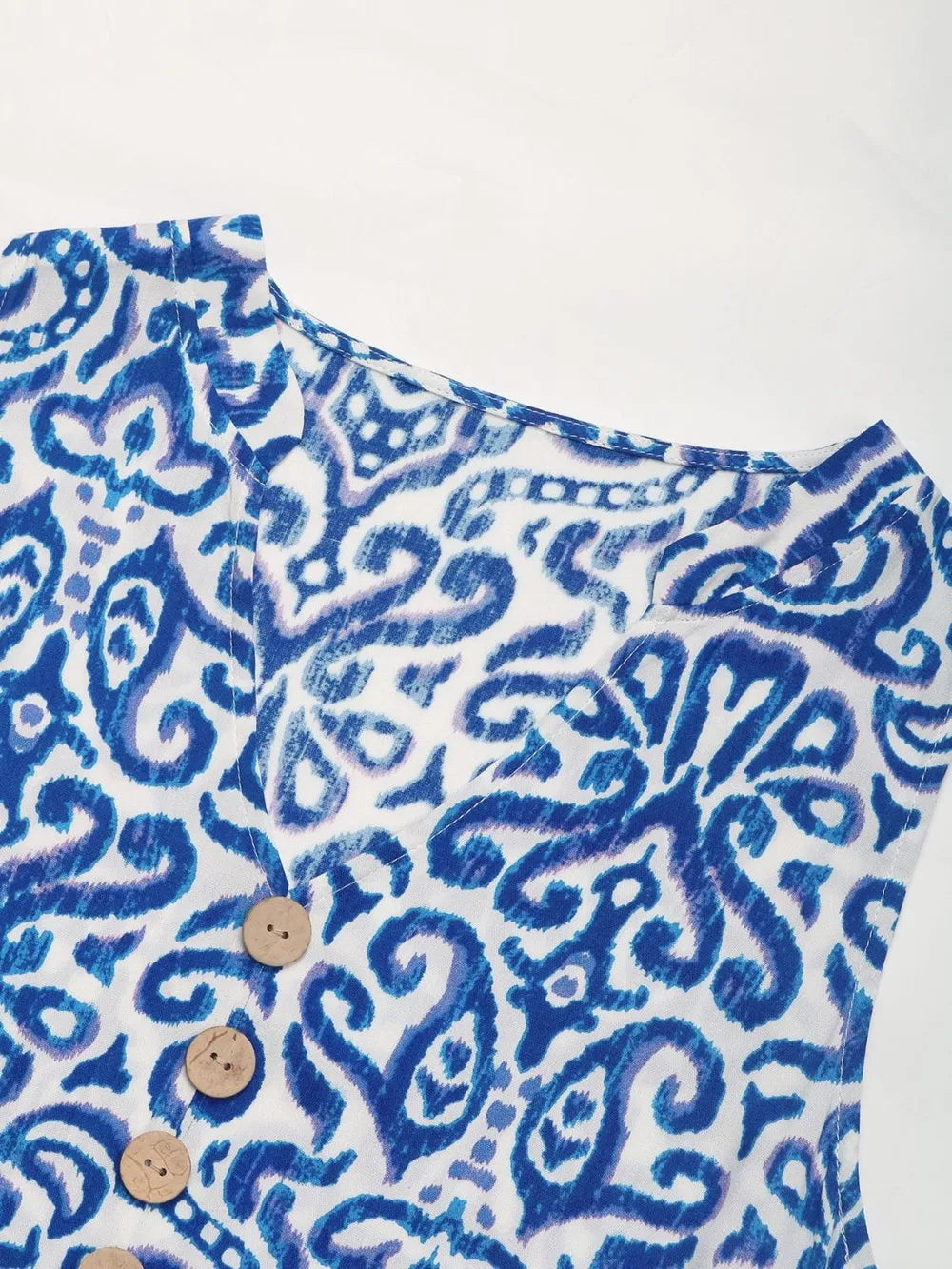 Velste Perfee Decorative Button Printed Notched Sleeveless Midi Dress