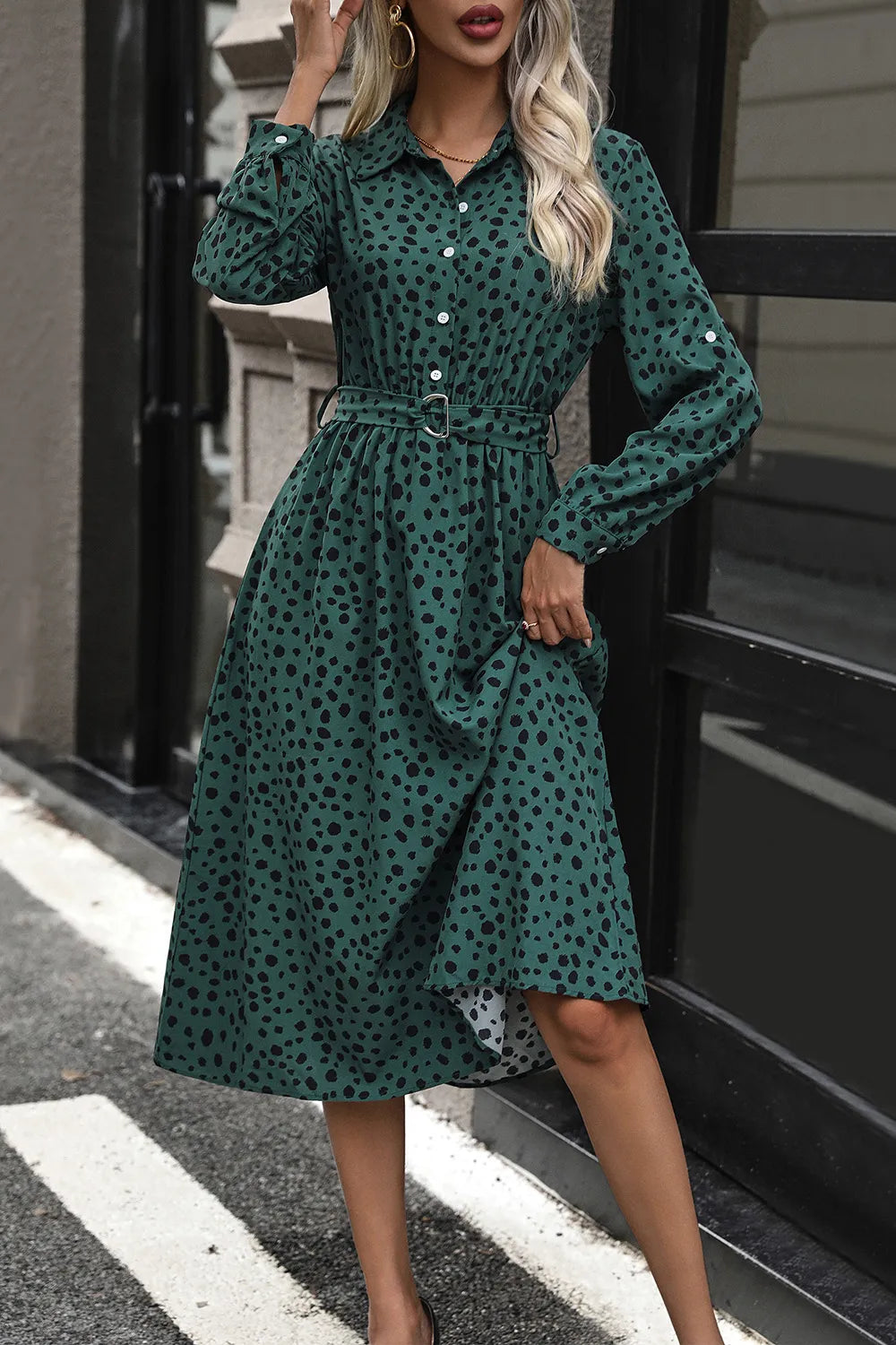 Velste Perfee Printed Belted Long Sleeve Midi Dress