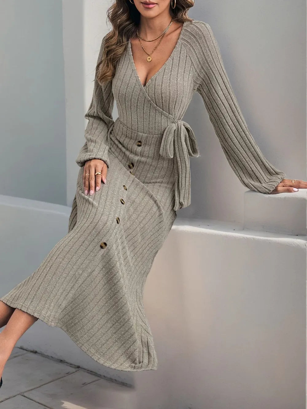Velste Perfee Ribbed Tied Surplice Long Sleeve Dress