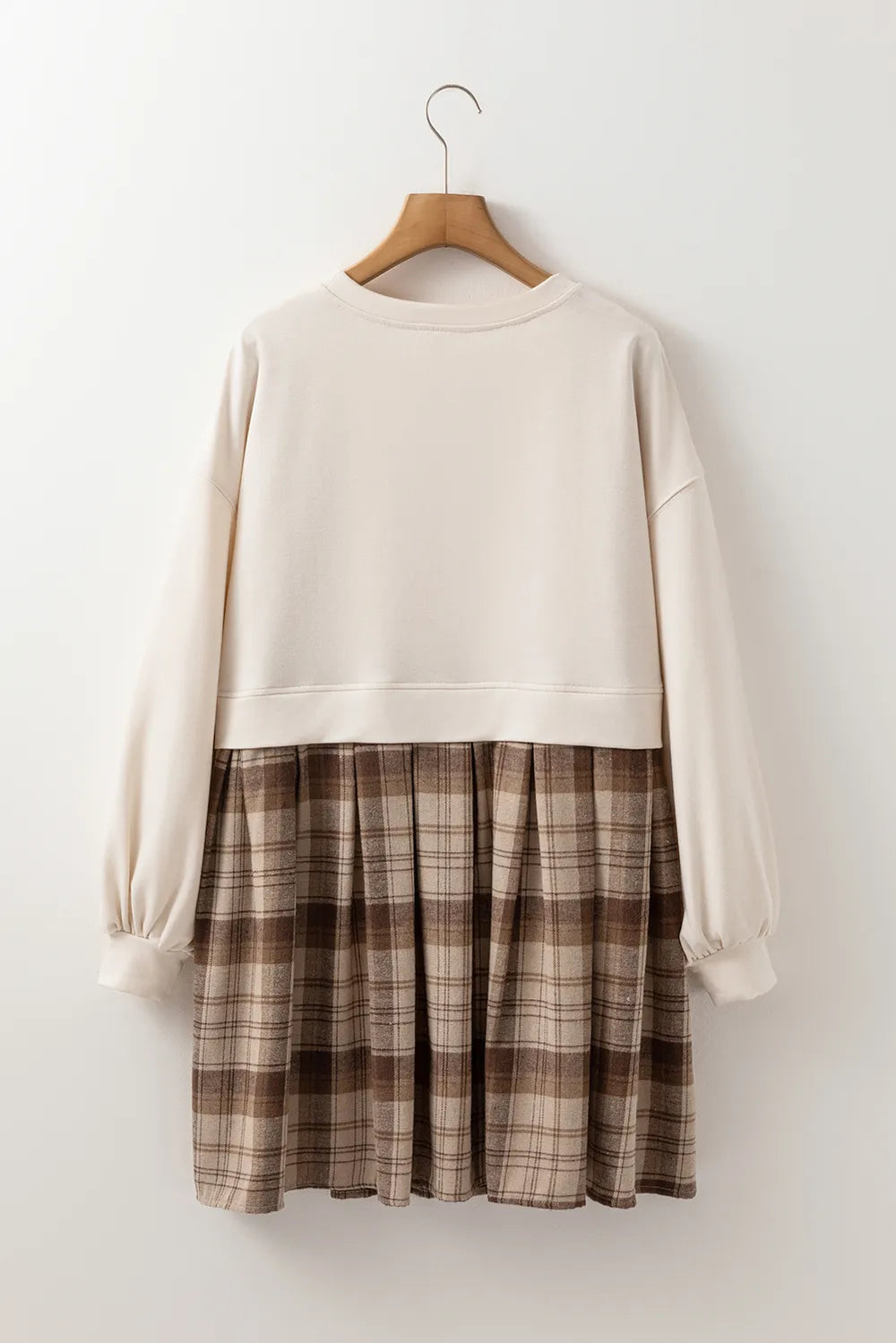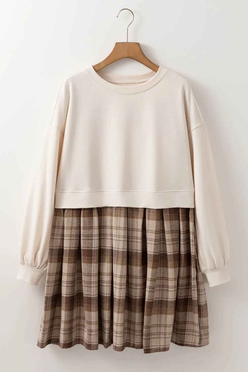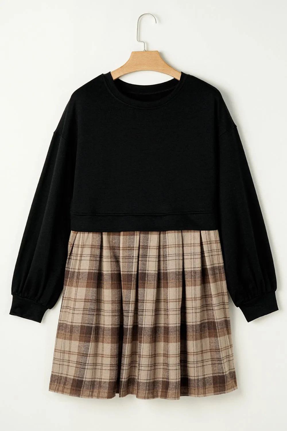Velste Plaid Round Neck Long Sleeve Mini Dress