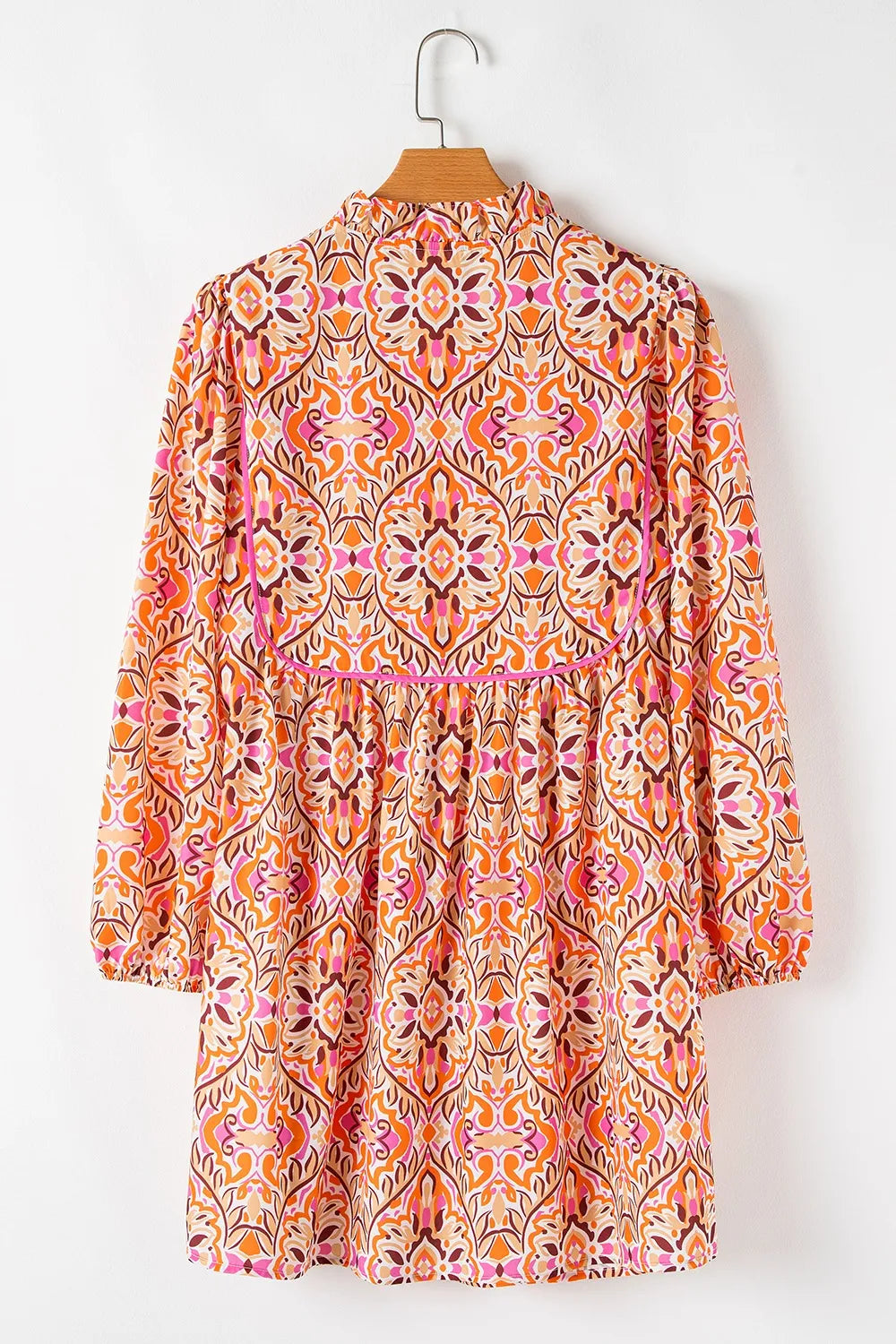 Printed Tie Neck Long Sleeve Mini Dress