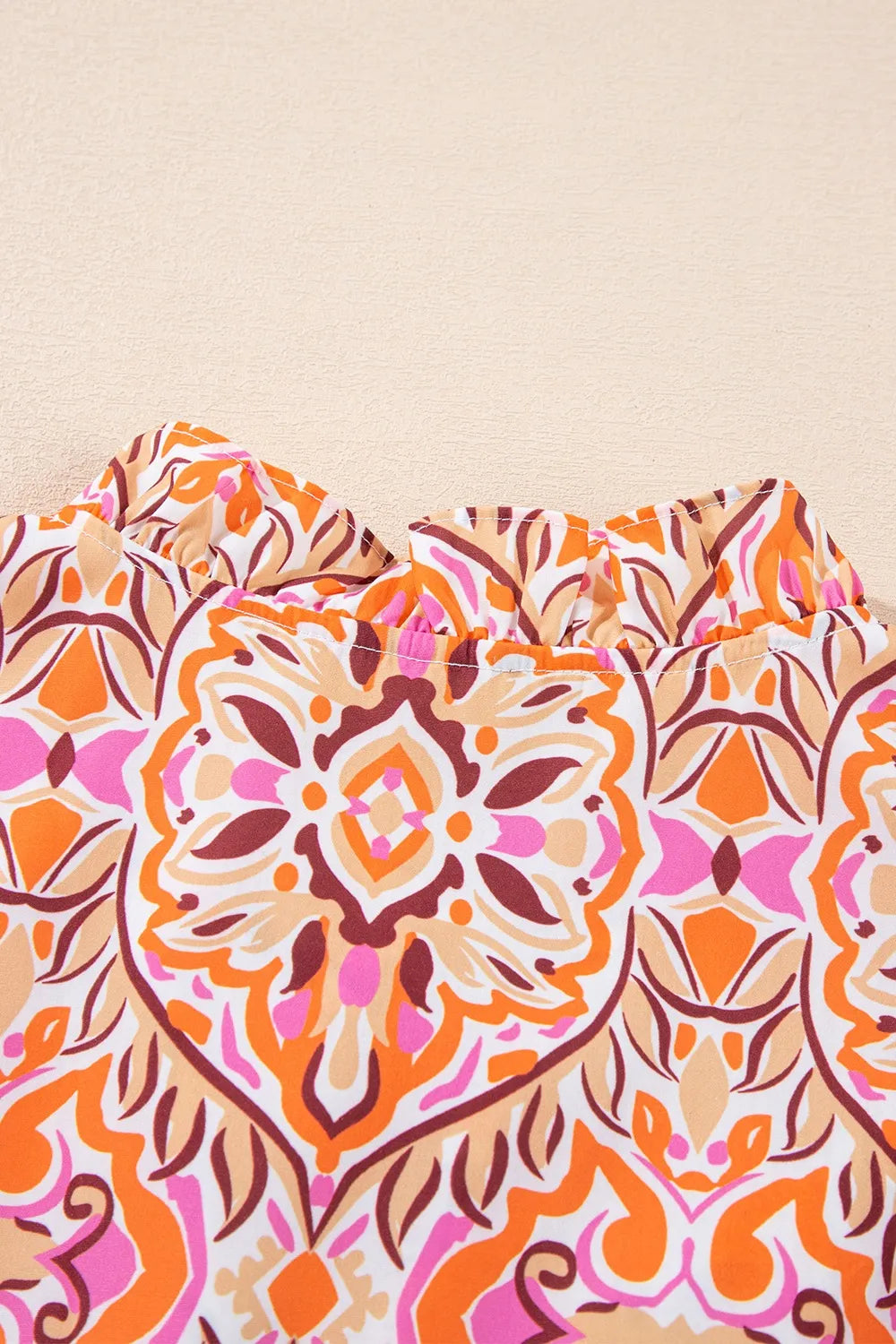 Velste Printed Tie Neck Long Sleeve Mini Dress