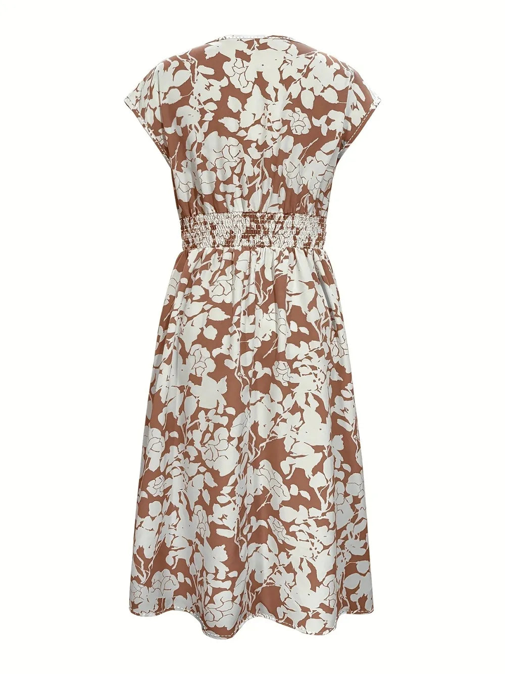 Printed V-Neck Cap Sleeve Midi Dress