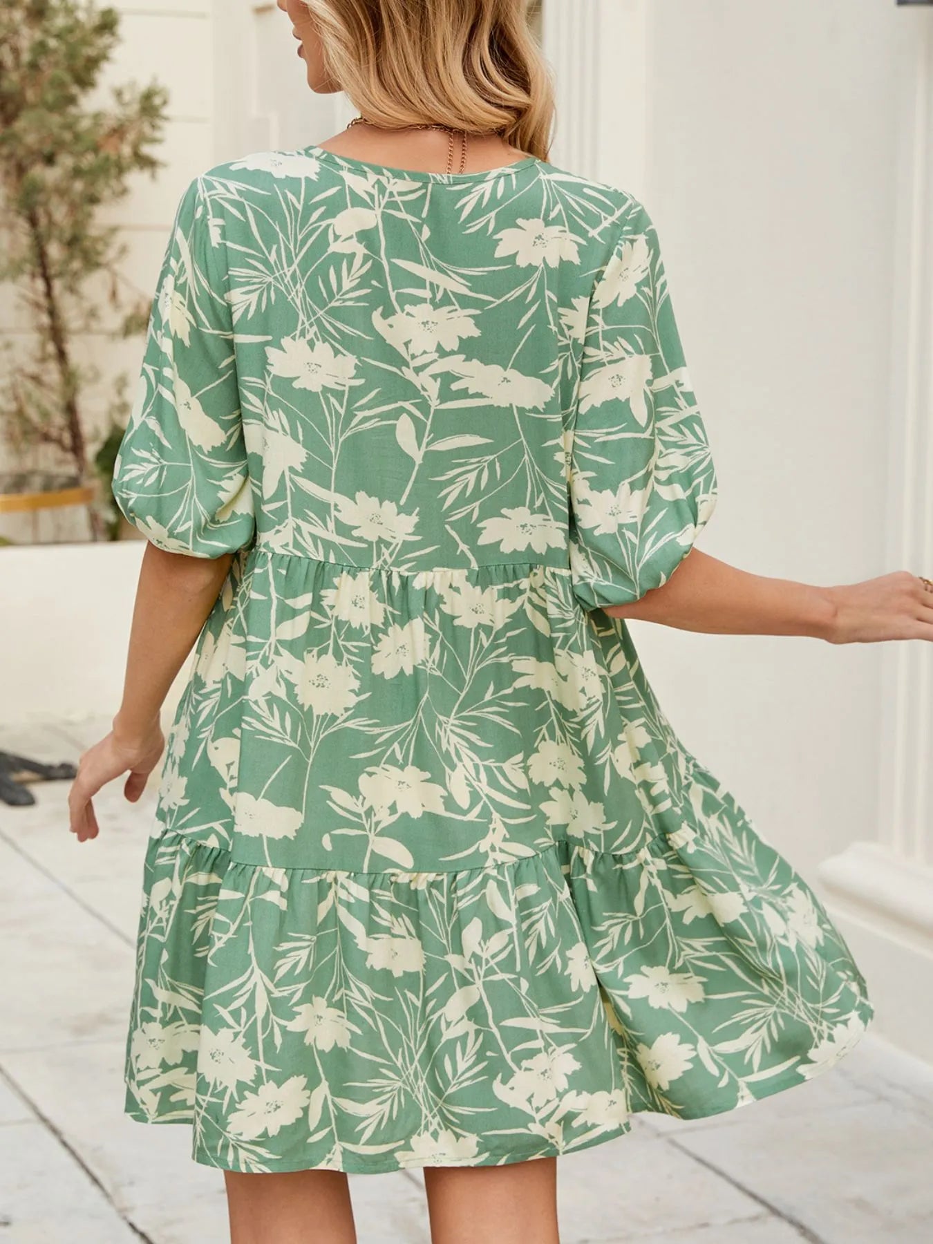 Velste Printed V-Neck Ruffle Hem Mini Dress