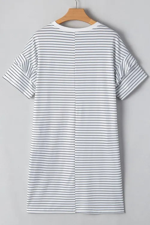 Stripe Round Neck Short Sleeve Mini Dress