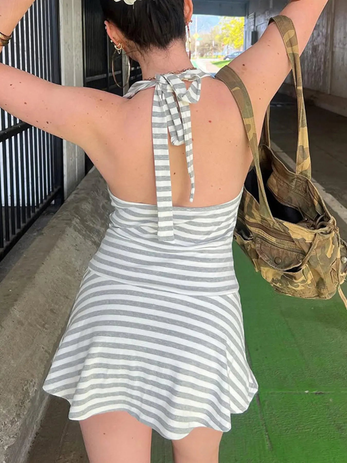 Striped Halter Neck Mini Dress