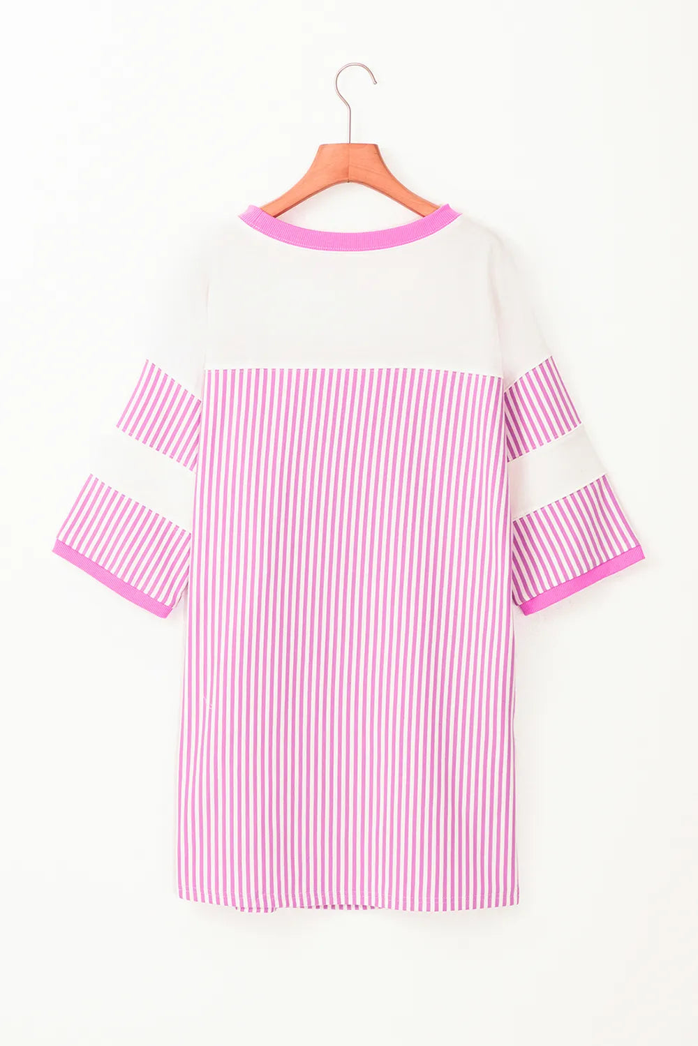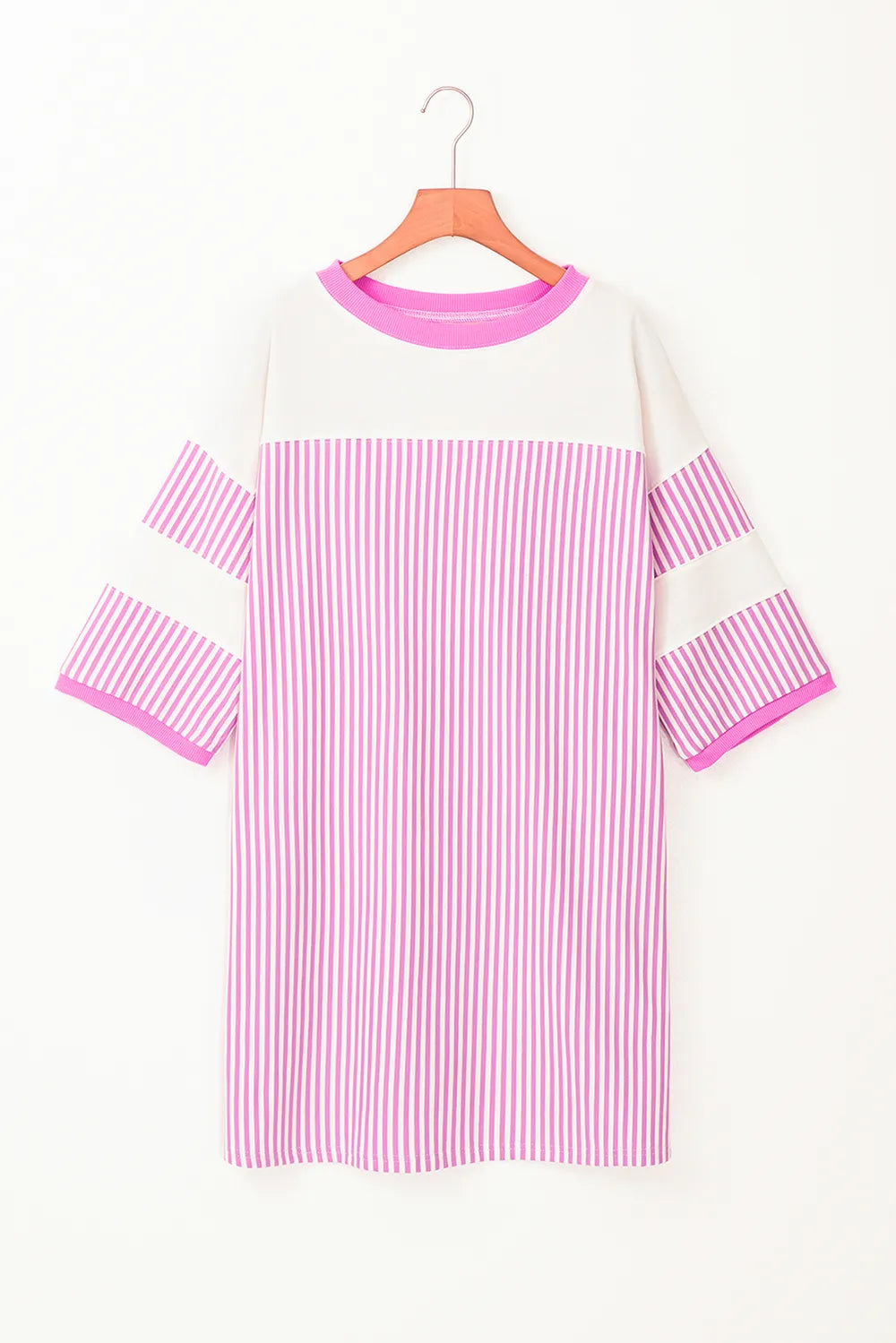 Velste Striped Round Neck Three-Quarter Sleeve Mini Dress