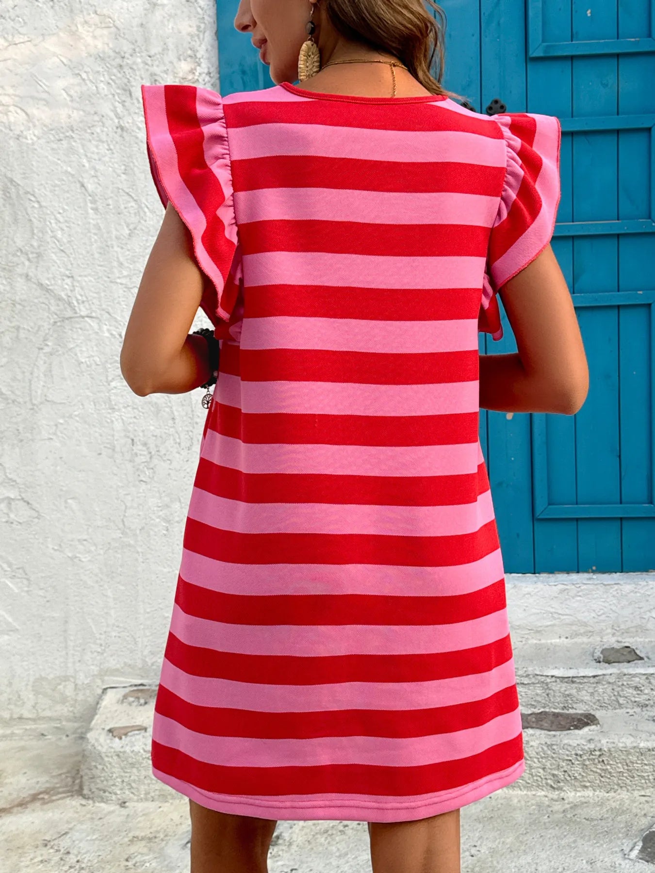 Velste Striped Ruffle Sleeve Casual Summer Dress