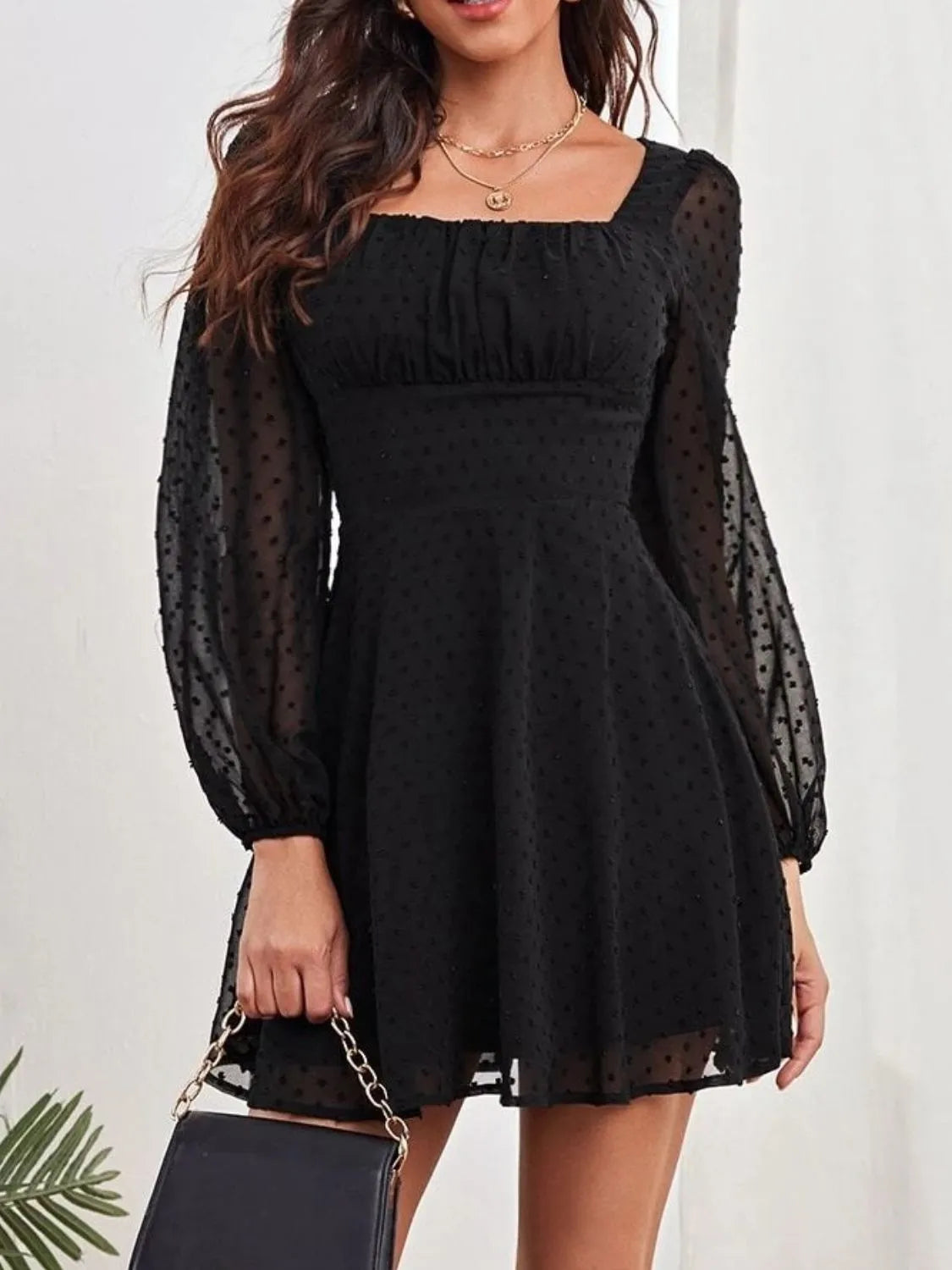Swiss Dot Long Sleeve Mini Dress
