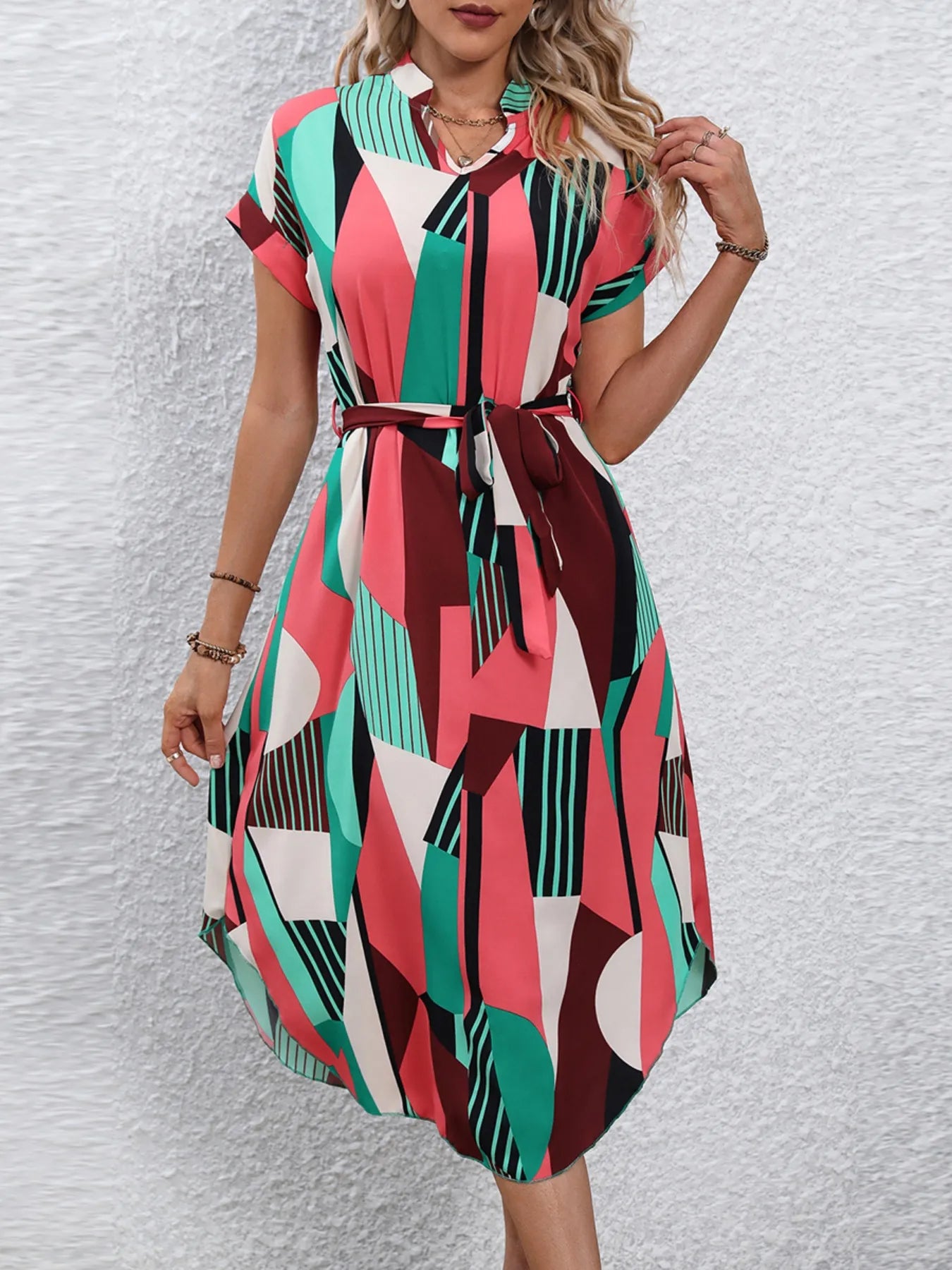 Tie Waist Short Sleeve Dress
