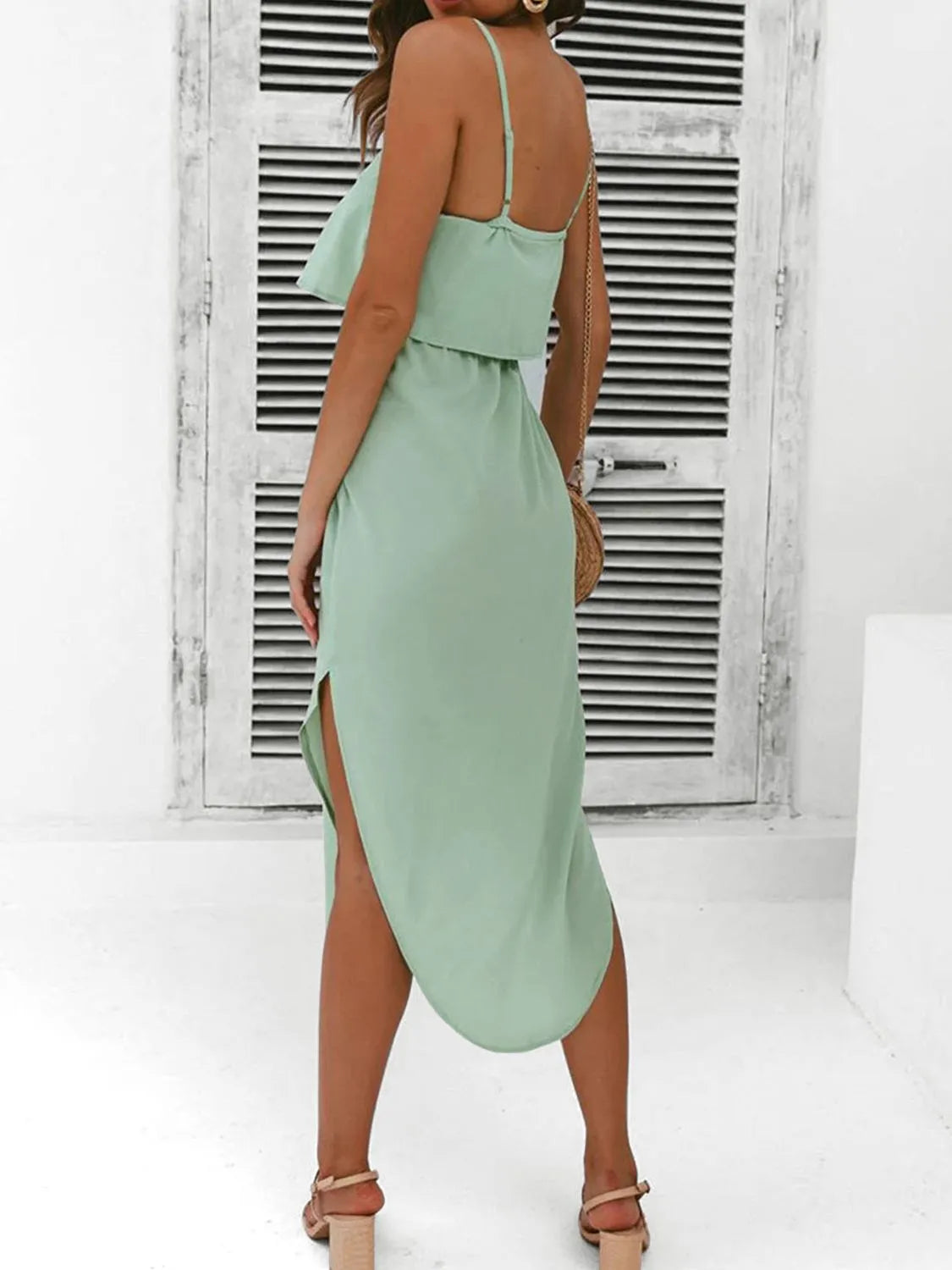 Tied Side Slit Midi Cami Dress