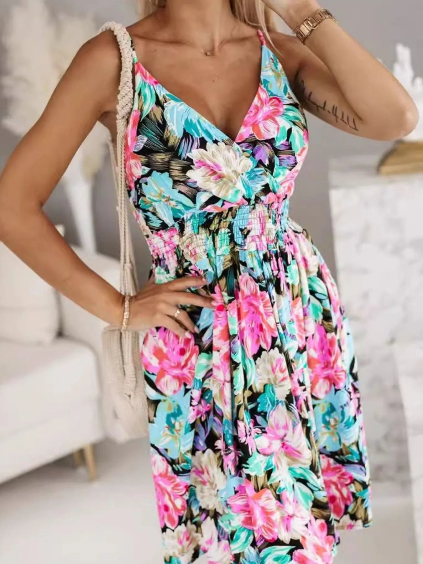 Velste Tropical Print Spaghetti Strap Mini Dress