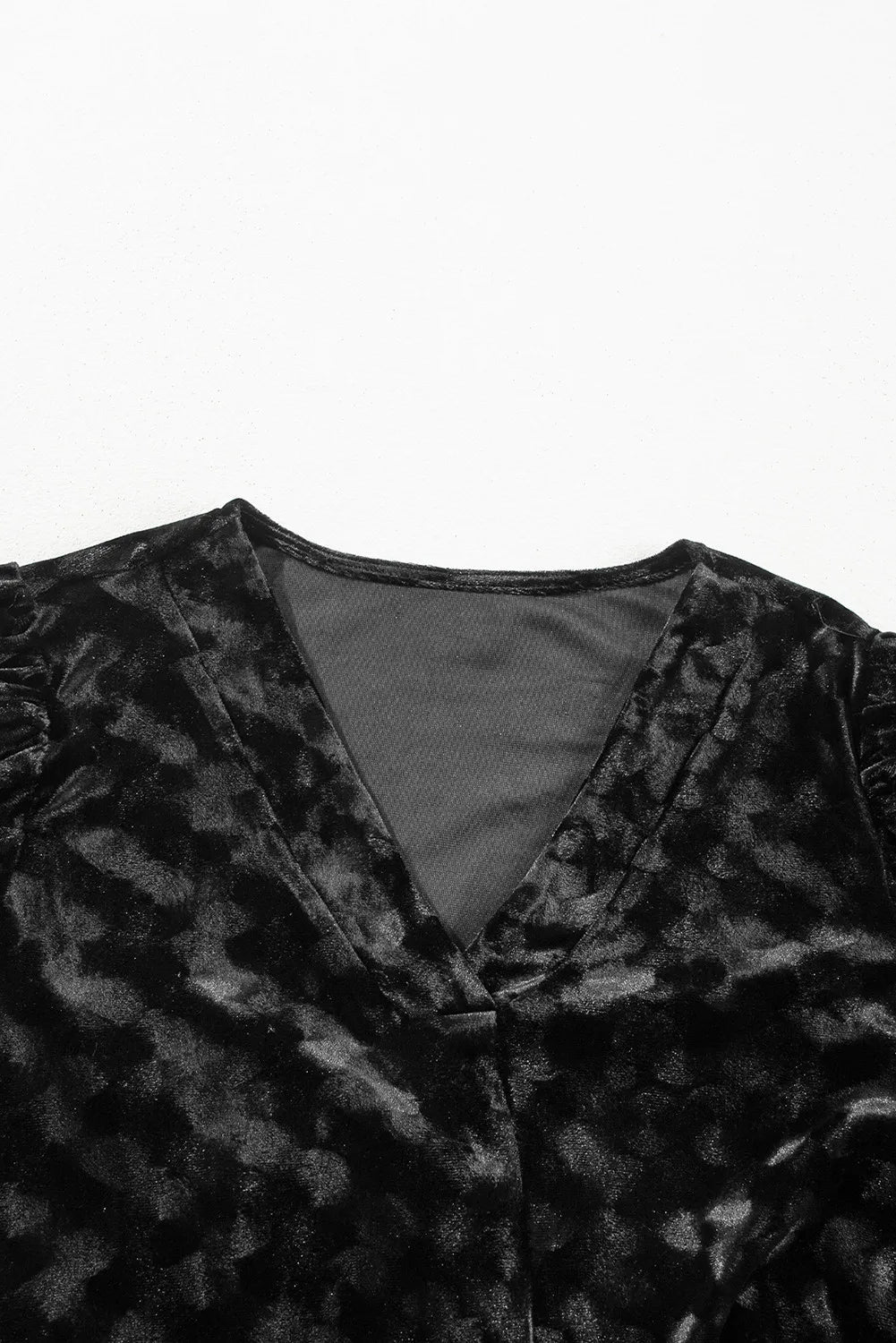 V-Neck Three-Quarter Sleeve Velvet Mini Dress