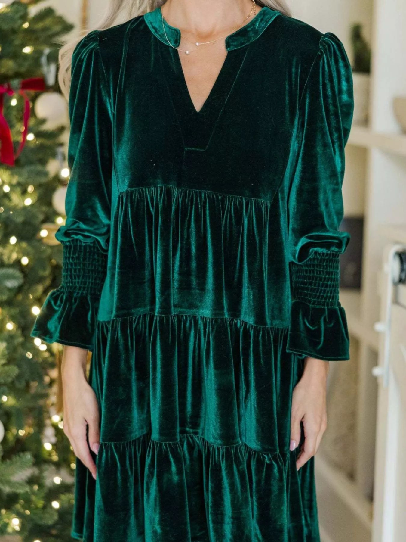 Velste Velvet Tiered Notched Mini Dress