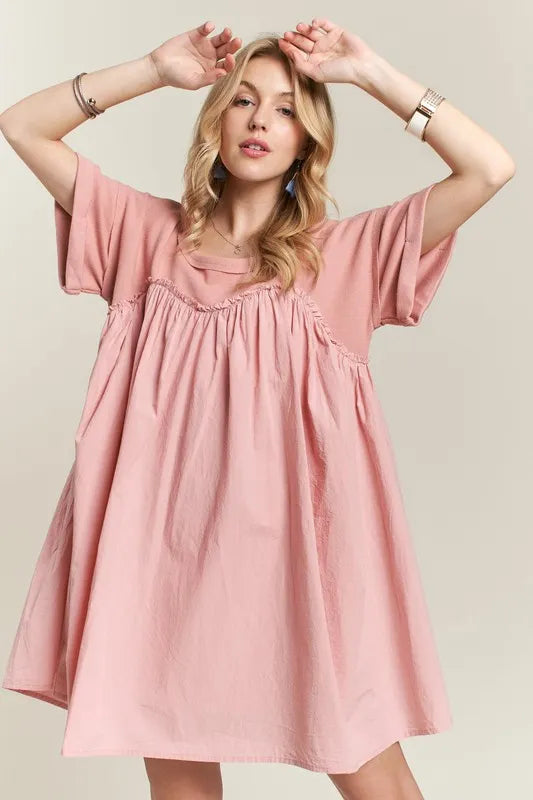ADORA Round Neck Half Sleeve Babydoll Dress