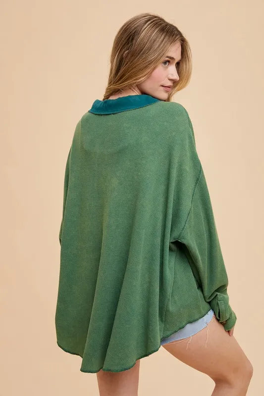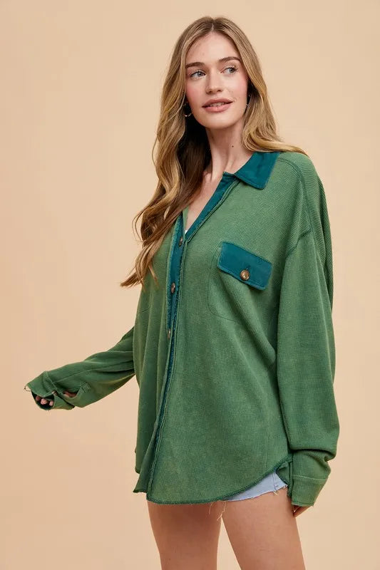 Annie Wear Waffle-Knit Mineral Washed Button Down Shirt